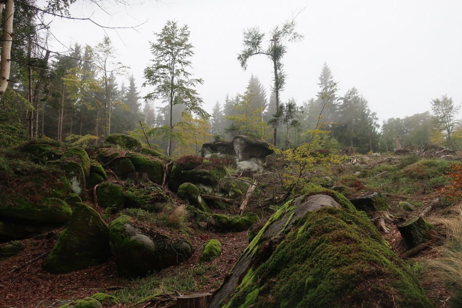 Tretí deň sme navštívili oblasť nazývanú Broumovské steny. Hustota skál a ich tvary neboli také ako v blízkych Adršpašsko-teplických skalách a ani sa tam nevytvorili také klasické skalné labyrinty. Bolo tam ale o poznanie menej turistov, čo nám umožnilo v kľude si obzerať zaujímavé a neobvyklé skalné útvary. Začínali sme z parkoviska pod Hvézdou. Hvězda je zrejme najznámejšie miesto v Broumovských stěnách. V nadmorskej výške 674 m n. m. tu stojí pútnická baroková kaplnka z pieskovcových blokov. V blízkosti kaplnky je ďalšia historická stavba – drevená turistická chata Hvězda, bohužiaľ v čase našej návštevy bola zatvorená. Od chaty sme pokračovali hrebeňom až na Božanovský Špičák a cez bludisko skál zišli do Máchovskej Lhoty, kde bol cieľ nášho výletu.