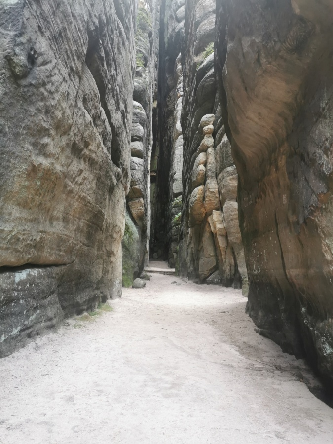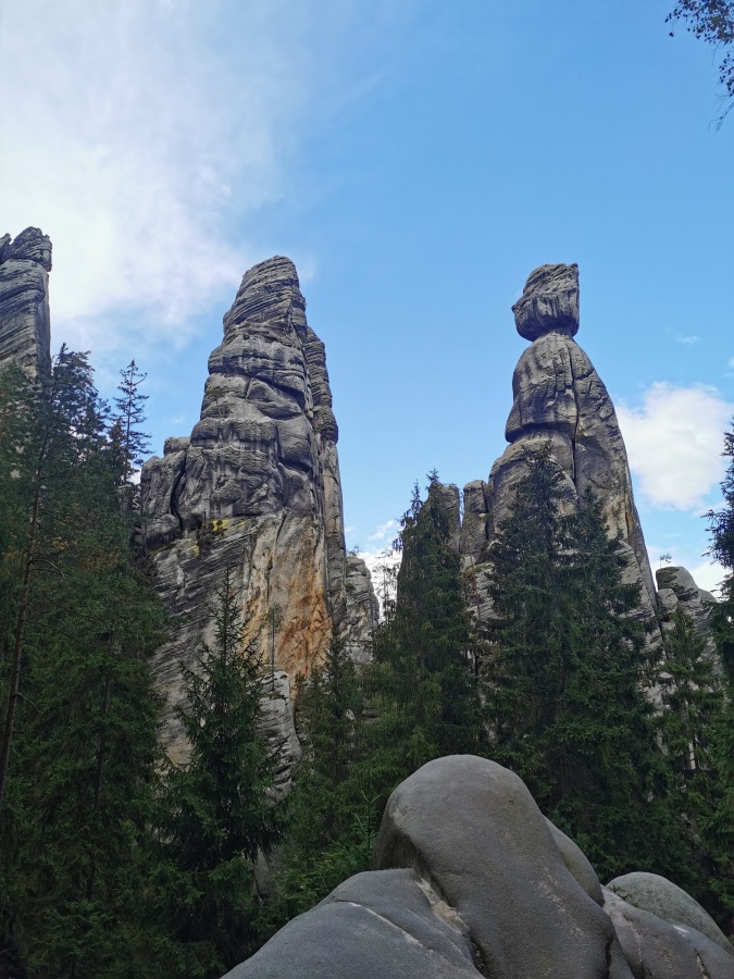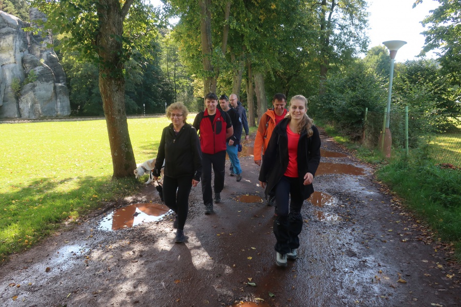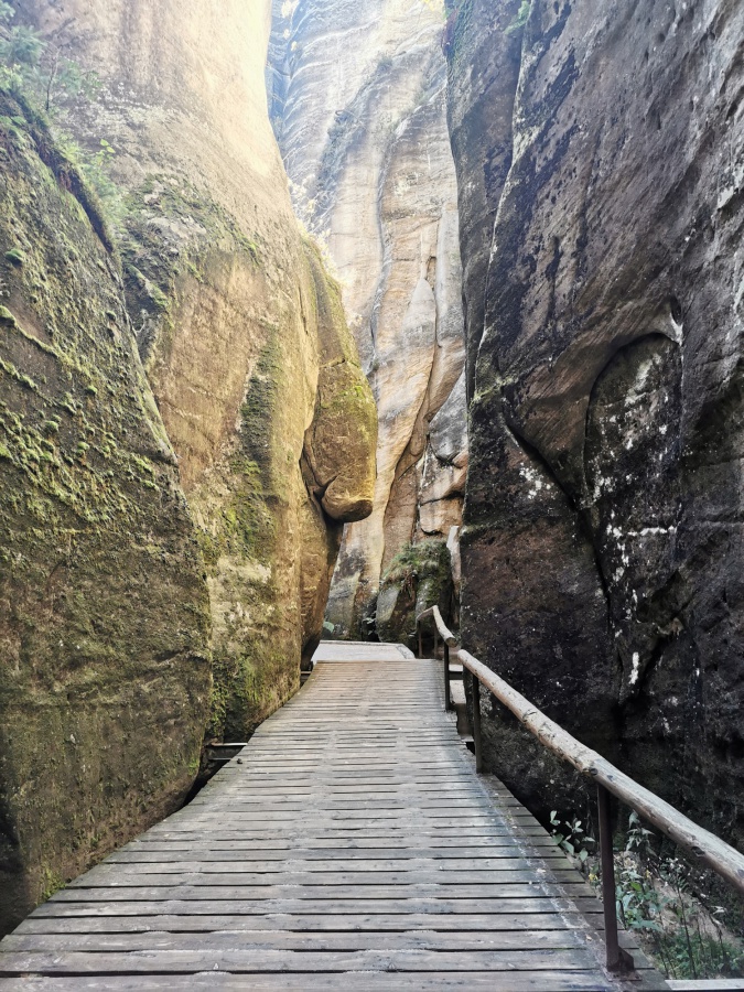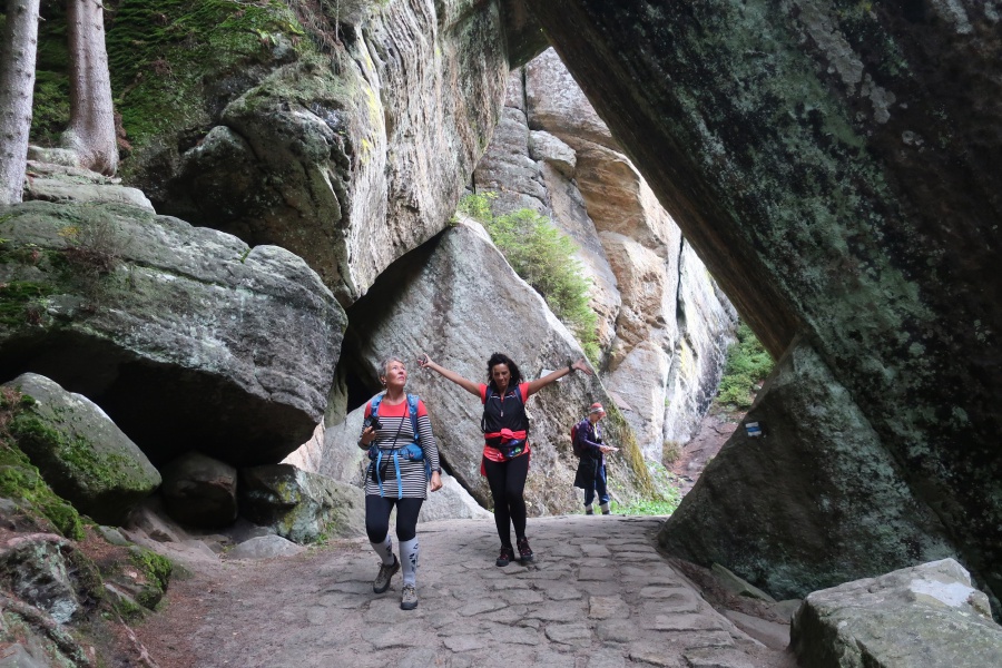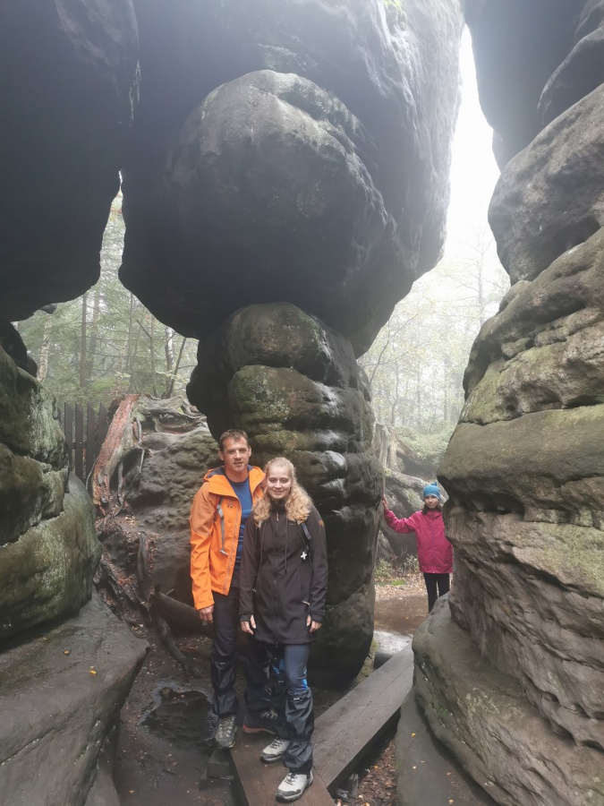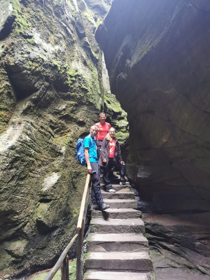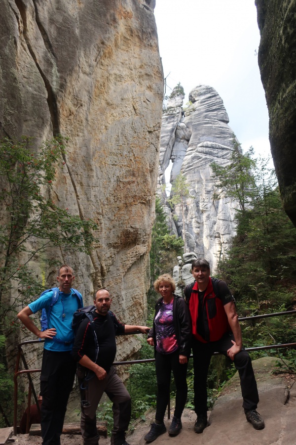 Druhý deň nám počasie prialo, preto sme ho strávili v bludisku Teplicko. Adšpášskych skál. Začínali sme na parkovisku pri vstupe do Teplických skál. Pretože už bolo mimo letnej sezóny, turistov bolo poskromne. Cena vstupného bola 120 Kč. Hneď na úvod nás čakal slušný výstup na hrad Střmen. Viedla naň strmá cesta nahor s cca 300 schodmi. A keďže sme sa nedali odradiť, na vrchole na nás čakali nádherné výhľady po okolí, všetko sme mali ako na dlani. Po zostupe rovnakou trasou, sme sa vnorili do 6 km skalného labyrintu Teplických skál, obohateného o informačné tabule, ktoré nás informovali o histórií objavovania skál, zaujímavostiach, prvých horolezeckých pokusoch, o rastlinách a živočíchoch, pričom obsahovali množstvo fotografií a ilustrácií. Po dvojhodinovom pešom presune sme sa dostali na turistický okruh skalným mestom v do Adršpášskych skalách. Tento okruh mal približne 3,5 km a bol vhodný aj pre menej zdatných turistov. Počas turistiky sme prechádzali cez vyhliadkové plošiny pomocou rebríkov, skalami rôznych tvarov s príznačnými pomenovaniami, labyrintami skál a okolo vodopádov. Medzi najzaujímavejšie atrakcie patrili: Myšacia diera, Krakonošov zub či Milenci.