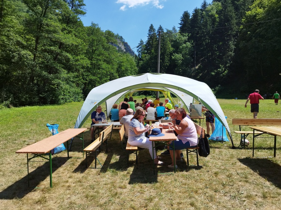 Slnečné a teplé počasie prilákalo na našu akciu 312 ľudí, ktorým záležalo na tom, aby okolie v ktorom žijú a hlavne trávia voľné chvíle, bolo čisté. Do čistenia potoka sa spolu s nami zapojili aj dve štvorčlenné zahraničné rodiny (Dánsko a Česká republika). Hneď na úvod nás prišiel pozdraviť poslanec a zároveň aj riaditeľ nemocnice MUDr. Igor Steiner, MPH. V tomto roku sme z potoka vyzbierali 10 vriec odpadu. Toto množstvo odpadu bolo vyzbierané v úseku cca 2 kilometre. Pozitívom bolo, že oproti minulému roku sme našli minimálne množstvo plastových fliaš. Okrem čistenia potoka od odpadu, sme pre deti pripravili aj umelecké, športové a edukačné aktivity. Veľkej pozornosti sa dostalo aj ,,plátnu zo zmršťovacej fólie״, na ktorom deti vytvorili spoločné umelecké dielo. Pre tých odvážnejších nám členovia z horolezeckého klubu Manín Považská Bystrica zabezpečili lezenie na Gotické steny. A už tradične najväčší úspech zožali dva koníky, ktoré s bravúrou ovládali naši členovia Ladislav Kľučka s priateľkou. Ďalším lákadlom pre deti bol aj skákací hrad. Po všetkých týchto aktivitách sme začali pociťovať hlad, ktorý sme zahnali chutným gulášom a pizzou.