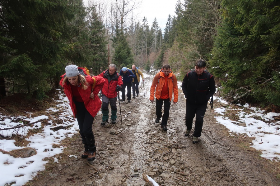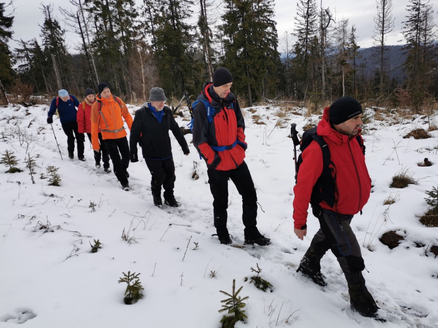 Druhý deň sme sa rozhodli pre trochu náročnejšiu túru z Brezy až na chatu na Vasiľovskej holi. Celková dĺžka trasy bola 20 km s prevýšením 800 metrov. Počas výstupu sme zažili dve tváre Oravy, prvá polovica trasy bola typicky jesenná (cca po Mrzáčku) a v druhej polovici sme sa brodili niekde až pol metrovým snehom, čo veľmi sťažovalo pohyb. Najviac sme dostali zabrať pri výstupe na Príslopec, kde chodník nebol vôbec prešľapaný. Z vrcholu sme zišli popri zjazdovke na chatu, kde sme zakončili túru.