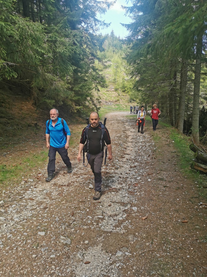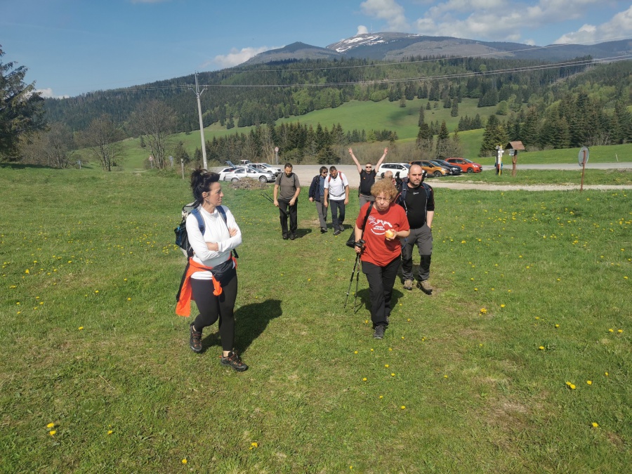 Autá sme zaparkovali v cestnom sedle Besník kúsok nad Telgártom. Hneď pri smerovníku bolo dostatok miesta na parkovanie. Na trasu sme sa vybrali po červenej značke Ceste hrdinov SNP ku smerovníku Pod Čuntavou. Táto časť trasy viedla po kvalitnej spevnenej ceste s nádhernými výhľadmi na Kráľovu hoľu. Miernym prevýšením sme pokračovali až ku smerovníku Pod Ondrejiskom, kde sme opustili Cestu hrdinov SNP. Stále po červenej sme pokračovali na vrchol, asi v dvoch tretinách k vrcholu sme odbočili na neznačený chodník, ktorý nás doviedol na najvyšší bod Slovenského raja- Ondrejisko, ktorý leží vo výške 1 271 metrov. Rovnakou trasou sme sa vrátili naspäť na značený chodník a pokračovali k vrcholu Borovniak (1 268 m.n.m.). Na vrchole boli umiestnené dve lavičky, každá otočená iným smerom. Z prvej vrchnej lavičky bolo vidieť Vysoké Tatry a z druhej dominovali výhľady na Kráľovu hoľu. Po prestávke na občerstvenie z vrcholu sme schádzali rovnakou trasou. Pred odchodom domov, sme sa zastavili ešte pri prameni Hrona, Chmarošskom aj Telgártskom viadukte.