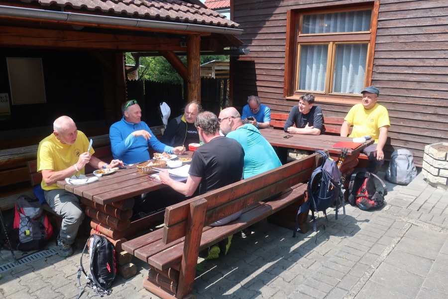 Tak ako každý rok, tak aj teraz nechýbal v deň konania súťaže turistický pochod „Jarní výšlap”, na ktorom sme sa aj my zúčastnili. Organizátori pre nás pripravili dve trasy na 5 a 12 km. Prvá trasa viedla prevažne po asfaltových cestách, preto ju využívali prevažne rodiny s kočiarmi. My sme sa rozhodli pre tú dlhšiu, s tým že sme si ju ešte predĺžili o nejakých cca 5 km. Štart obidvoch trás bol pred obecným úradom a cieľ . poľovníckom areáli v Červených, kde sa konala aj súťaž vo varení gulášu. Úvod trasy viedol po žlto značenej turistickej značke a miernym prevýšením sme sa dostali ku smerovníku Pod Křížovým, kde bola prvá kontrola. Kúsok za smerovníkom sme opustili značenú trasu a po vlastnom značení sme sa dostali ku kontrole č.2 pri odpočinkovom mieste Prístrešok U dubu. Tu bolo pre všetkých účastníkov pripravené malé občerstvenie. Úsek po kontrolu č.3 v obci Pržno, viedol prevažne po rovine popri rieke (Vsetínska Bešva). Po kontrole sme si upravili trasu a pokračovali k Prženskému vrchu, kde na nás čakala skupina kamarátov, ktorí si robili vlastnú trasu. Odtiaľ už spoločne sme došli do cieľa, kde na nás čakal bohatý kultúrny program.
