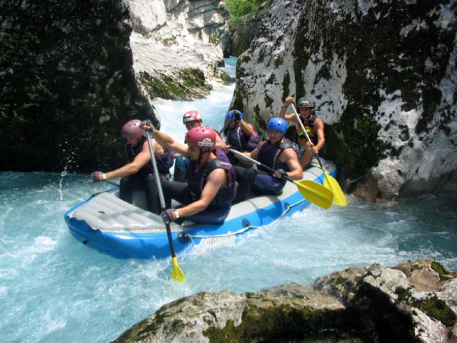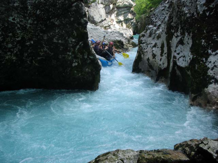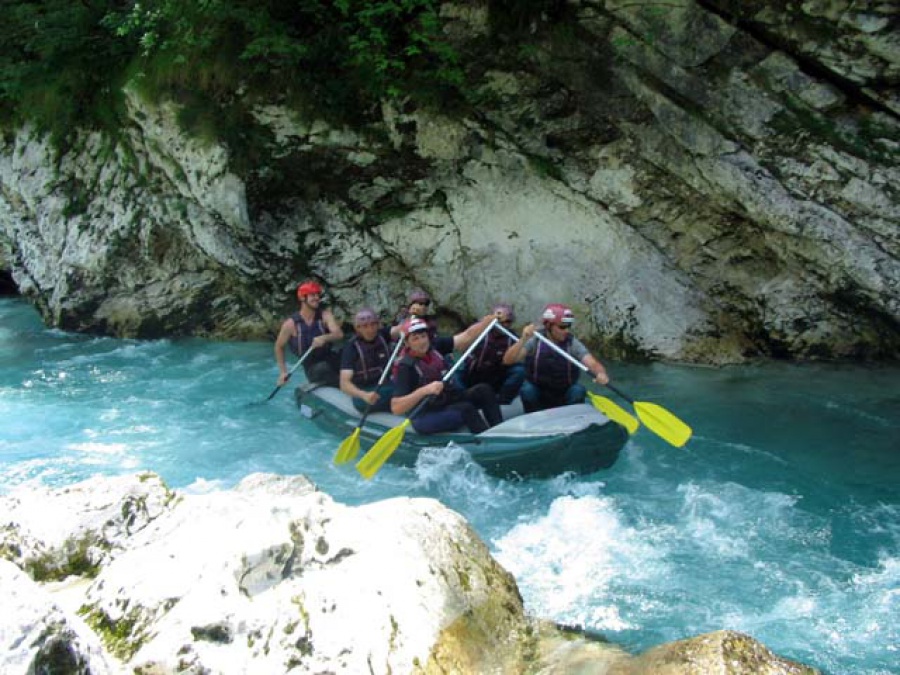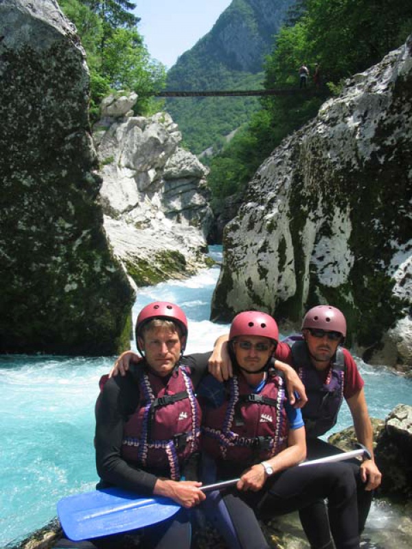 Ďalší deň v Slovinsku bol opäť na vode. Celodenné splavovanie Soče začína pri Trente (úsek sa v letných mesiacoch pre nedostatok vody nesplavuje). Záver raftingu bol v dedinke Trnovo. Keď porovnávam obtiažnosť splavovania v Taliansku a teraz na Soči, tak toto bolo len čvachtanie sa v lavóri :-)