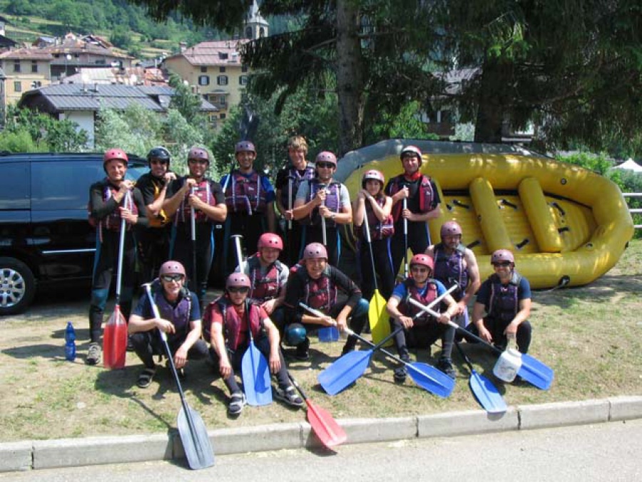 Druhý a tretí deň sme strávili na vode. Prvý úsek raftingu začal v dedine Ossana. Po 5-tich hodinách zdolávania náročných perejí (do obtiažnosti IV), končíme v centre vodákov Mezzana. Vyčerpaní a plní dojmov deň uzatvárame v pizzerii, kde sme sa stretli so Saganom, aktuálnym majstrom sveta v horskej cyklistike zo Slovenska.