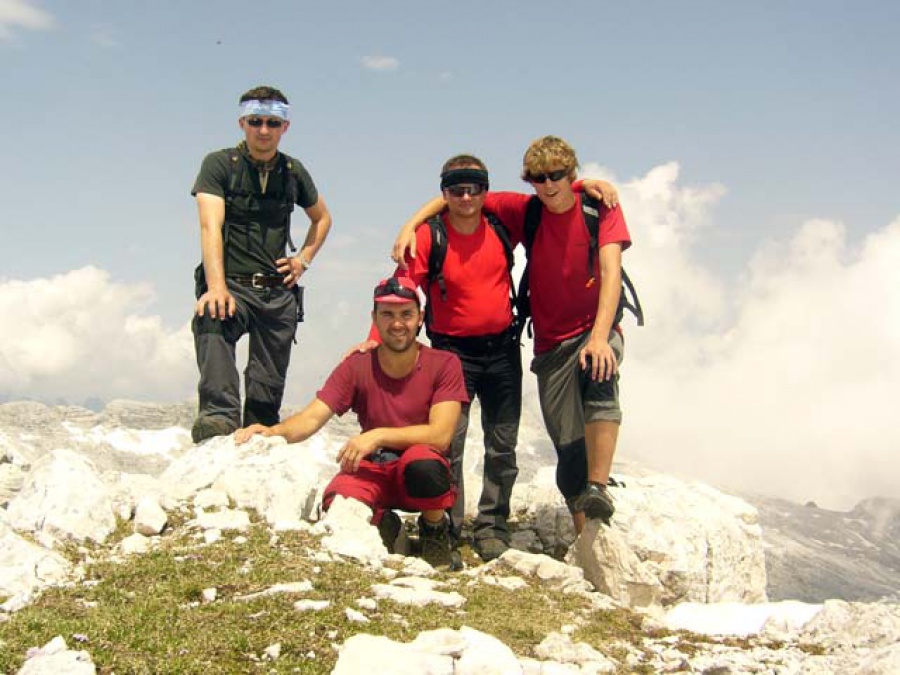 Pohodlné ubytovanie na priváte meníme za stany. Prvý deň pobytu v Slovinsku sme absolvovali vysokohorskú turistiku na vrch Kanin (2 587 m). Túra bola pre zložitosť terénu kondične náročná.Pri Kačarjevej Glave (2 034 m n. m.) sa naša skupina rozdelil na tri vrcholové družstvá.