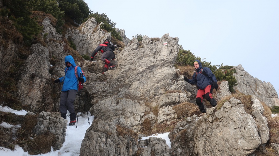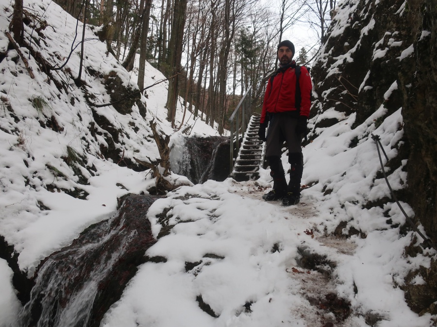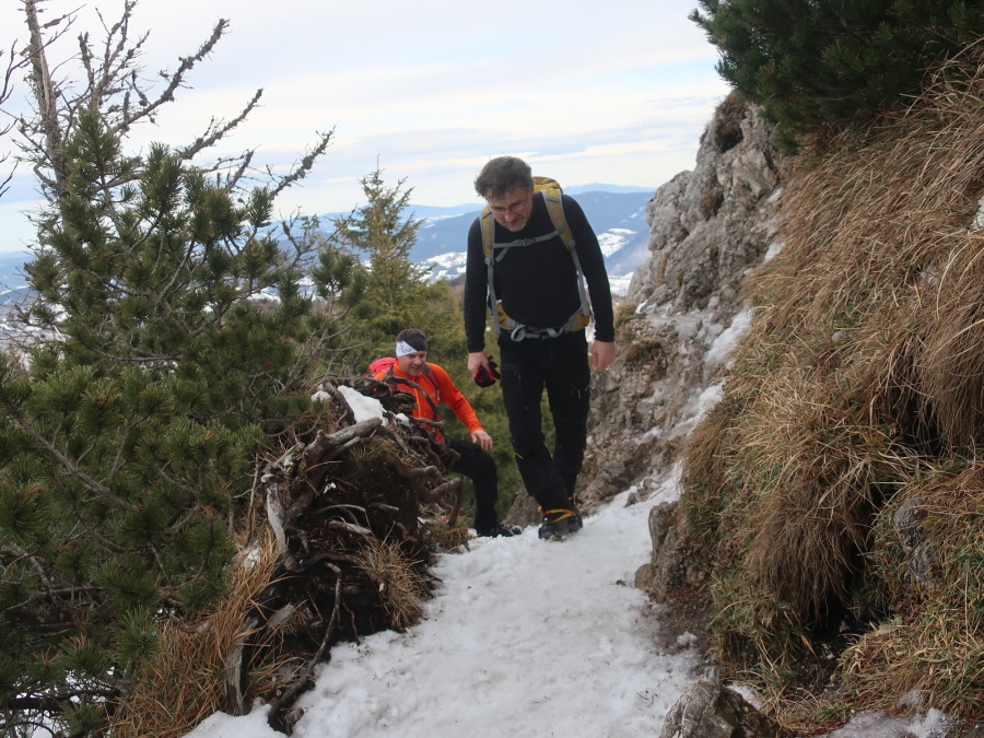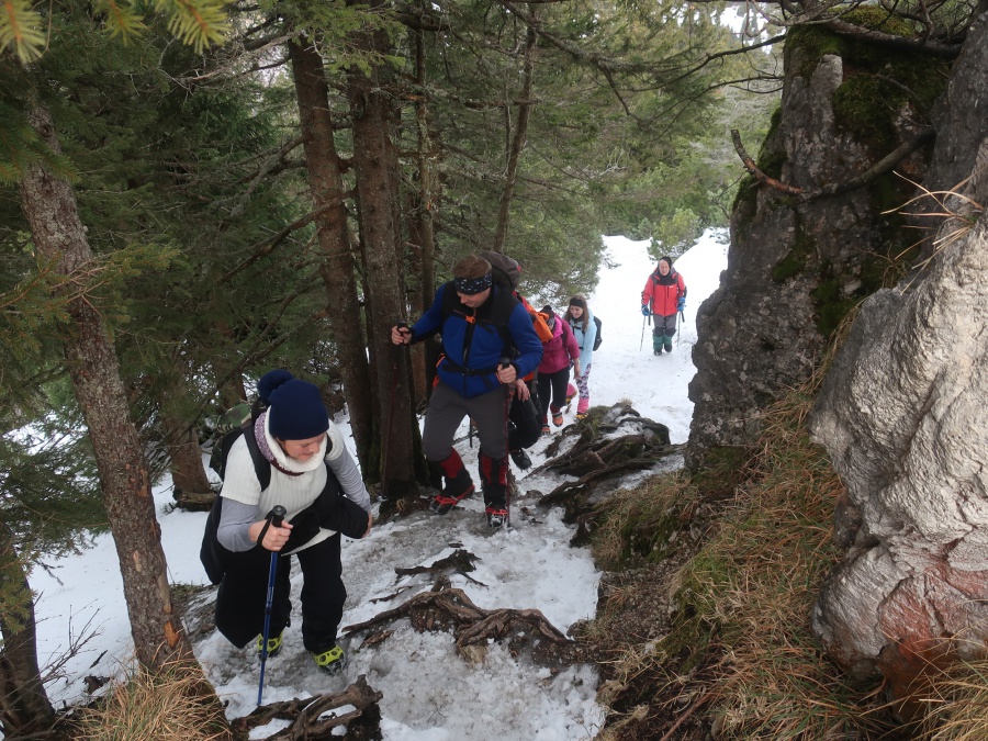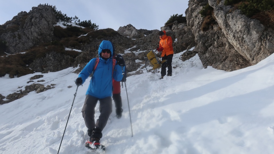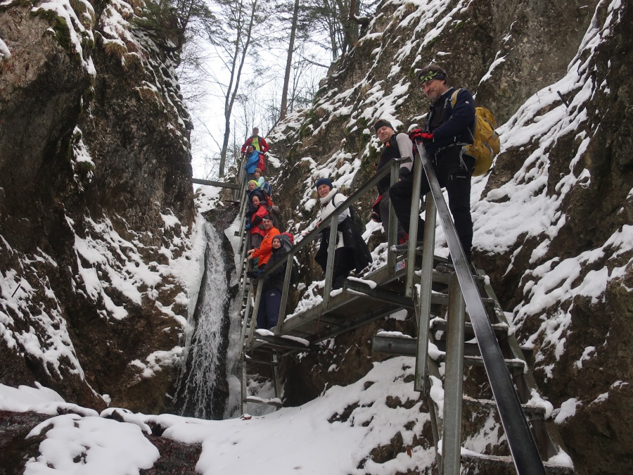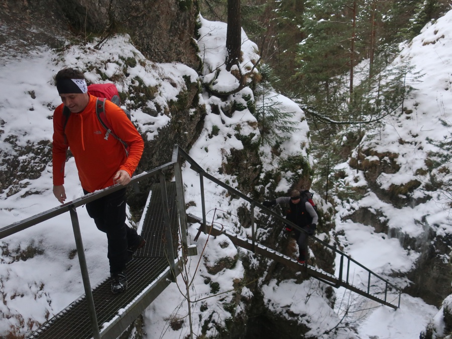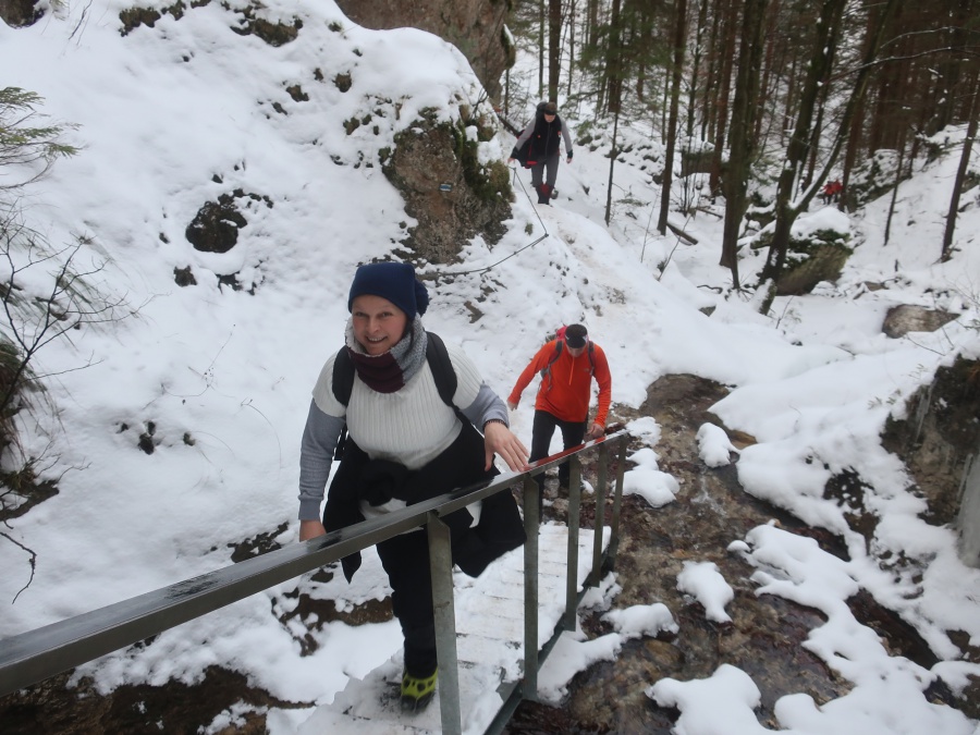 Početná dvanásť členná skupina sme vyrazili na túru z obce Štefanová a po polhodinke sme stáli u smerovníka Podžiar, odkiaľ začínala vstupná brána do Horných Jánošíkových dier. Hneď od začiatku sa nám začalo na rebríkoch šmýkať, preto sme nasadili „nešmeky”. V tejto časti dier nám to hodne pripomínalo Slovenský raj. Dlhé a vysoké rebríky poskytovali zaujímavé pohľady na vodopády – jediná škoda, že neboli celkom zamrznuté. Dlhšiu prestávku na občerstvenie a oddych sme si spravili až v sedle Medzirozsutce, odkiaľ nás čakal záverečný prudký výstup na vrchol Veľkého Rozsutca s prevýšením cca 400 výškových metrov. Tento rok nebolo veľa snehu, preto nám pri výstupe nehrozilo žiadne lavínové nebezpečenstvo. Na vrchole sme sa dlho nezdržali kvôli sychravému počasiu. Aj hmla nám zabránila sa pokochať výhľadmi do okolia. Zostup sme nasmerovali na Medziholie a odtiaľ do cieľa na parkovisko v obci Štefanová.