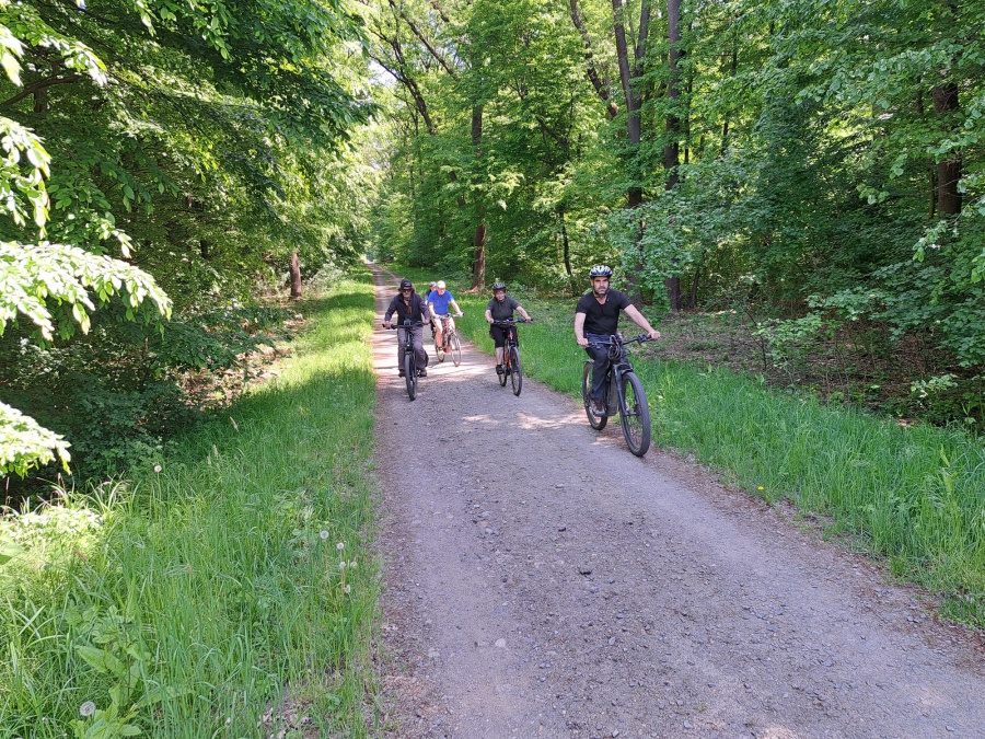 Zvyšné tri dni pobytu sme strávili v okolí Mutěníc, kde sme mali vybavené ubytovanie. Prvý Mutěnický deň sme vyrazili prevažne zvlneným terénom, kde sa striedala asfaltová cesta s poľnými cestami, smerom na Hodonín. Po pomerne zložitom prejazde mesta, sme sa dostali k rieke Morava, kde začína Baťov kanál. Po občerstvení v reštaurácii Srub, sme pokračovali popri kanáli do Rohatca. Z Rohatca sme išli príjemným cyklo chodníkom, ktorý bol vybudovaný po zaniknutej železničnej trati. Postupne sme prechádzali cez obce Vacenovice, Milotice, kde sme si spravili prestávku na obed v miestnej reštaurácii a cez Dubňany naspäť do cieľovej obce Mutěnice. Na druhý deň sme sa vybrali smerom na Poddvorov, kde sme navštívili rozhľadňu Na Podluží. Rozhľadňa sa nachádzala za obcou Nový Poddvorov a mala tvar ropnej ťažobnej veže, pretože v tomto regióne sa nachádzalo najväčšie nálezisko ropy na Morave. Následne sme pokračovali cez obce Prušánky a Moravský Žižkov do Velkých Bílovic. Odtiaľto cyklo chodníky viedli prevažne vinicami, kde zhruba v strede viníc sa nachádzalo vyhliadkové miesto s kaplnkou sv. Cyrila a Metoda. Posledný úsek Vrbice – Čejkovice – Mutěnice sme si spestrili návštevou prebiehajúcej vínnej cesty. Posledný deň pred odchodom domov sme navštívili rozhľadňu Vyšicko a sírny prameň v neďalekej obci Čejč.