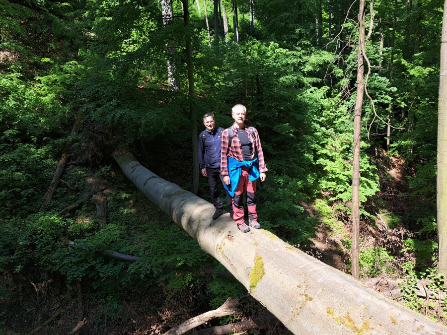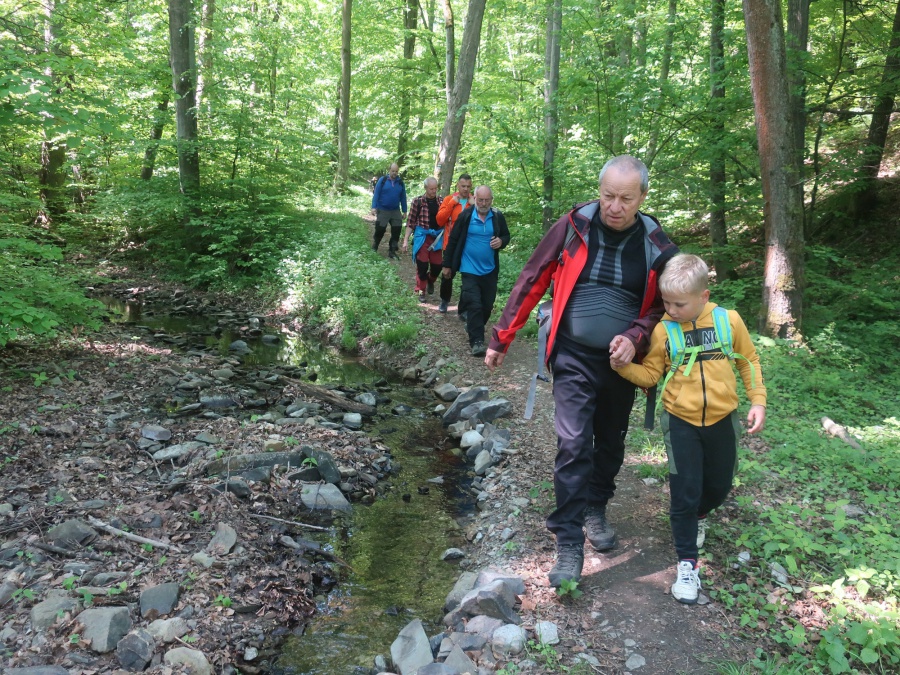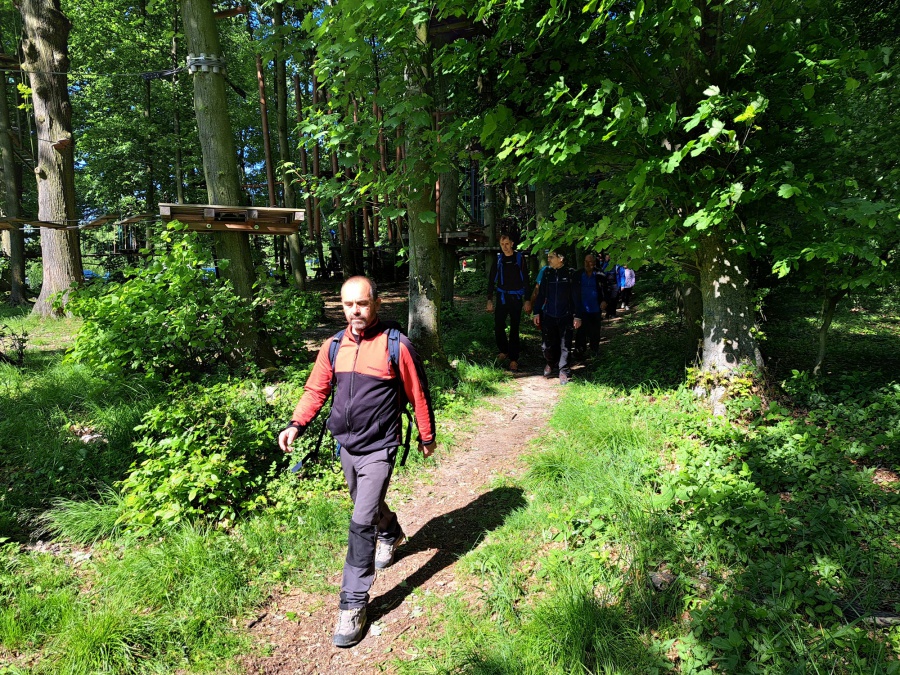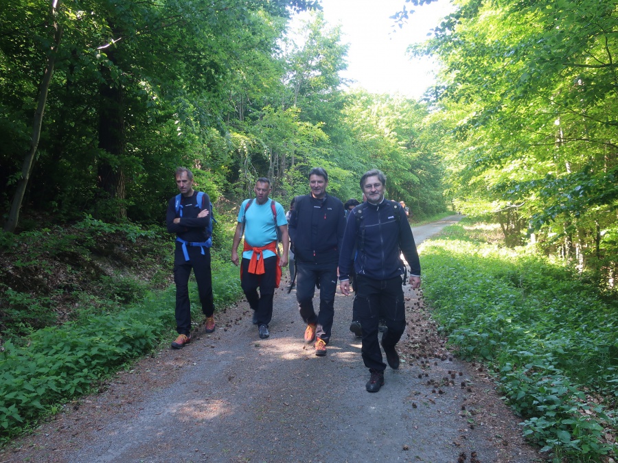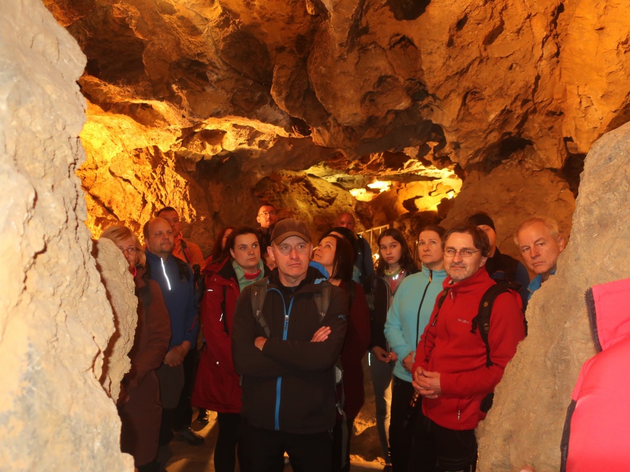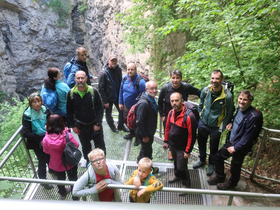 Autobus nás doviezol na malé námestie v obci Týn nad Bečvou, kde sa nachádzalo múzeum B. Smetanu. Na trasu sme vyrazili po červenej turistickej značke a po pol hodine sme dorazili k hradu Helfštýn. Z časovej tiesne sme popozerali len nádvorie hradu. Odtiaľ nás turistický chodník (nazývaný Gabrielka) viedol prevažne spevneným chodníkom, prechádzajúcim po vrstevnici celým úbočím pohoria Maleník. Chodník Gabrielka spájajúci hrad Helfštýn s mestom Hranice dostal názov po dcére Bedřicha Smetanu, ktorá tu zomrela v dvoch rokoch na tuberkulózu. Pri smerovníku Nad Rybáři sme odbočili vpravo a vystúpali hrebeň, odkiaľ chodník voľne klesal popri Valšovických jazierkach až k rieke Bečva do kúpeľnej obce Teplice nad Bečvou, kde sme mali zarezervovaný vstup do Zbrašovskej aragonitovej jaskyne. Po skončení prehliadky jaskyne sme pokračovali cez Hranickú priepasť do Hraníc, kde na nás čakal autobus.
