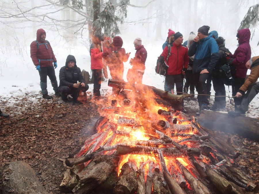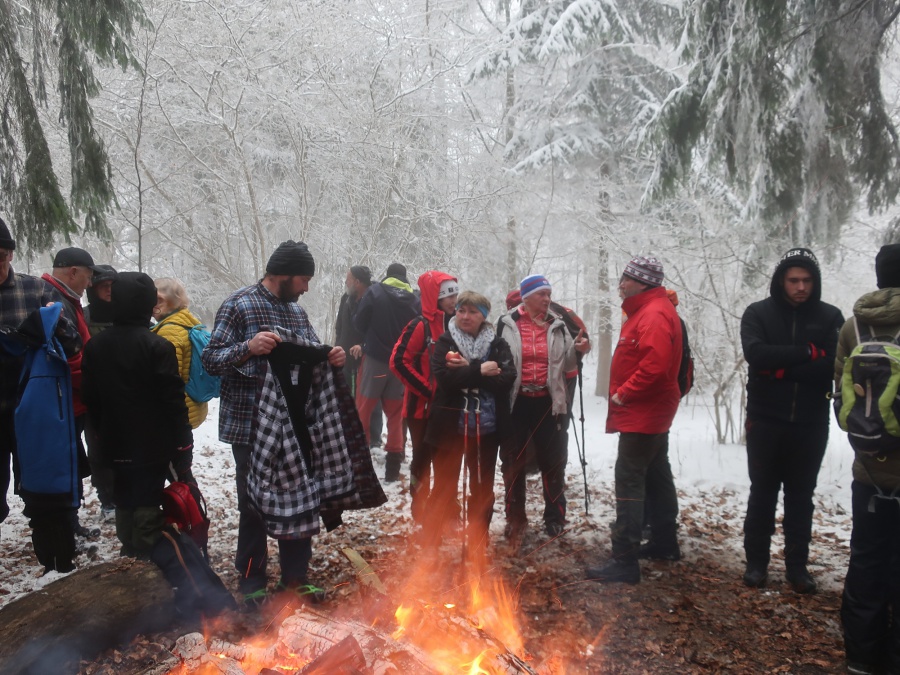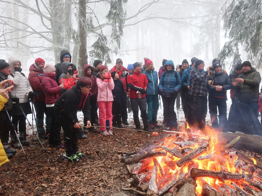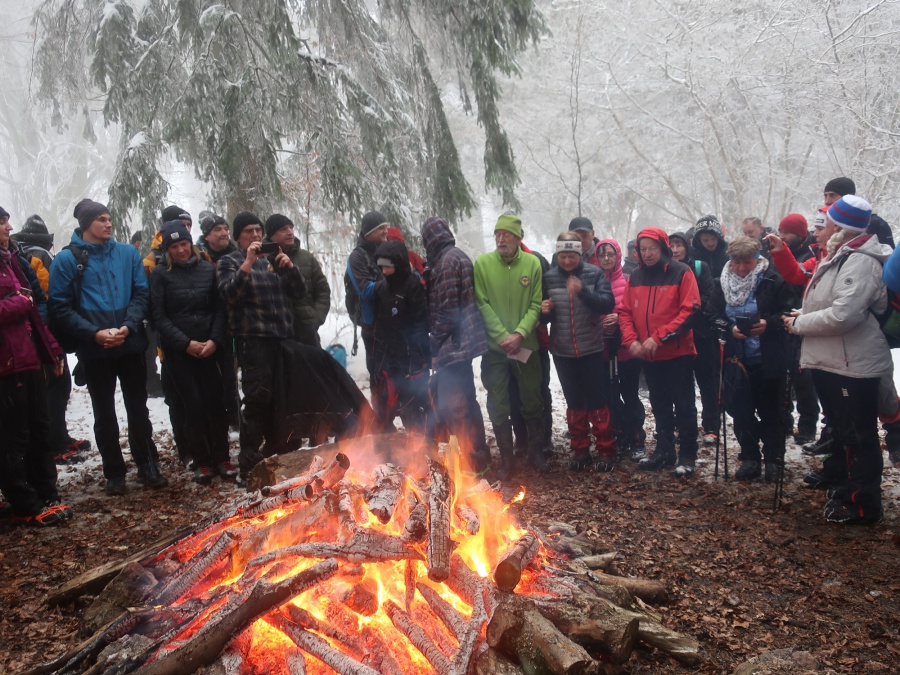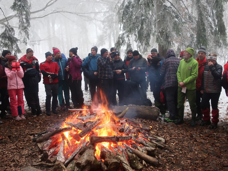Členovia nášho klubu každoročne začínajú turistickú sezónu výstupom na Veľký Manín. Takto tomu bolo aj tohto roku. Výstup sme absolvovali po serpentíne (žltou značený chodník), snehu bolo poskromne, ale vcelku pekne primrznuté, pri chôdzi krásne chrumkal pod nohami. Na lúke pod vrchol sa zišla skvelá partia, ktorá sa zohrievala pri vatre. Mnohí z tých, ktorí po silvestrovskej noci neváhali na Veľký Manín vystúpiť, symbolicky privítali nový rok v kruhu turistov, horolezcov, jaskyniarov i ostatných, ktorých láka a spája príroda.