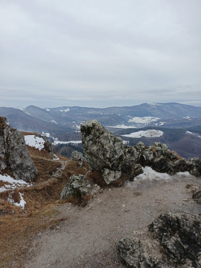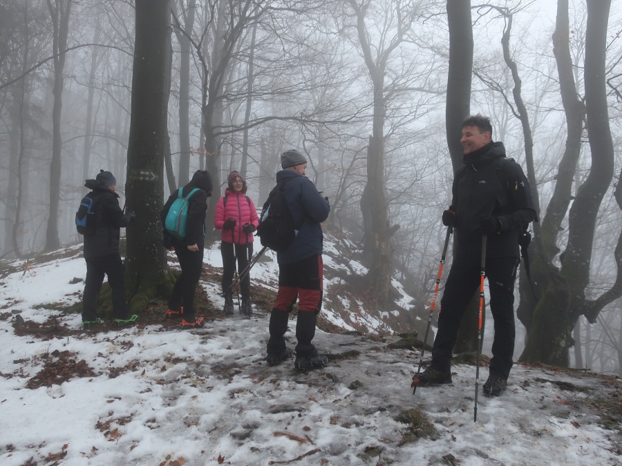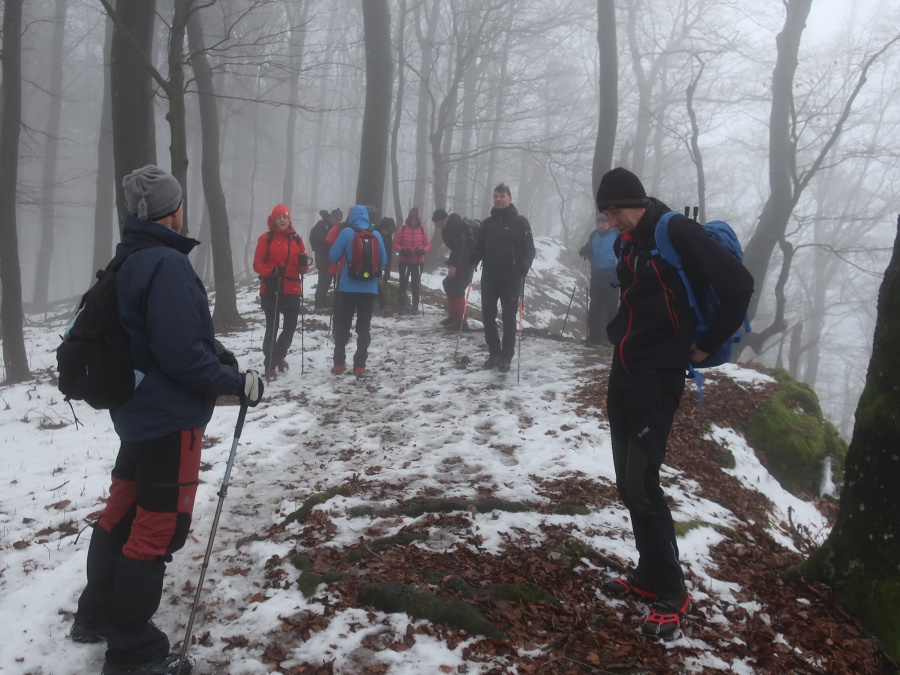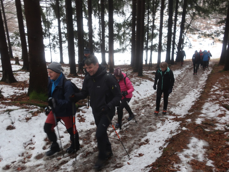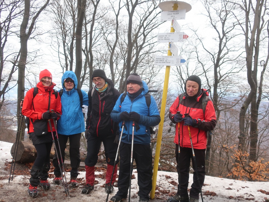 My sme sa rozhodli, že tentokrát pôjdeme zo sedla Homôlka. Autá sme zaparkovali pod lyžiarskym vlekom pri bufete Partizán. Po týždeň trvajúcich mrazoch (okolo -10°C), nastalo rapídne oteplenie (až tak, že sme videli nezvyčajne na toto ročné obdobie Salamandru škvrnitú), ale aj tak z rána bol terén zľadovatelý a bez turistických mačiek by bol výstup nebezpečný. Po modrej turistickej značke sme sa krátkym ale pomerne prudkým stúpaním dostali na bočný hrebeň, ktorý nás doviedol k smerovníku Srvátkova lúka, kde sme sa napojili na červeno značenú Cestu hrdinov SNP. Kúsok za smerovníkom bolo vybudované oddychové miesto s ohniskom a dvomi prístreškami proti dažďu. Po krátkej prestávke sme pokračovali zvlneným terénom a záverečným strmým stúpaním až do sedla Palúch a odtiaľ úzkym chodníkom k malej jaskyni, kde v prípade zlého počasia by sa dalo skryť. Pri jaskyni sa cesta rozdelila, vľavo sa išlo priamo na vrchol, túto variantu sme si zvolili aj my a vpravo sa išlo na malú lúku, kde sa nachádzalo ohnisko. Na skalnatom vrchole sa nachádzal kríž, od ktorého boli 360° výhľady do okolia. Aj keď bolo relatívne teplo, prudký vietor nás prinútil zaveliť na ústup. Keďže sme boli autami a nechcelo sa nám vymýšľať rôzne varianty, tak sme sa rovnakou trasou vrátili naspäť na parkovisko k autám.
