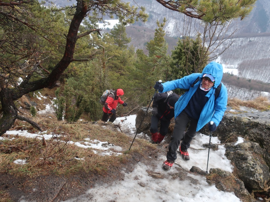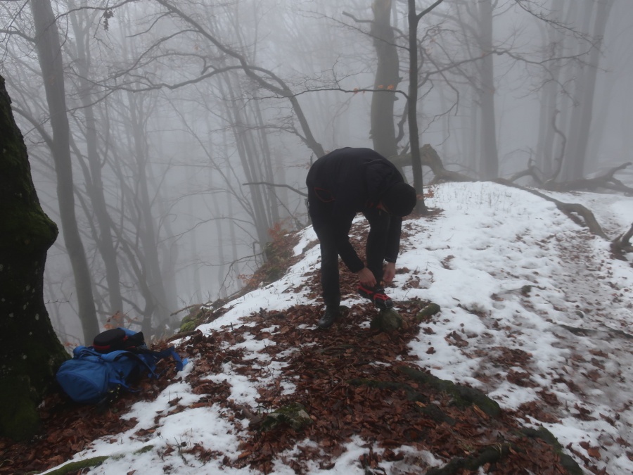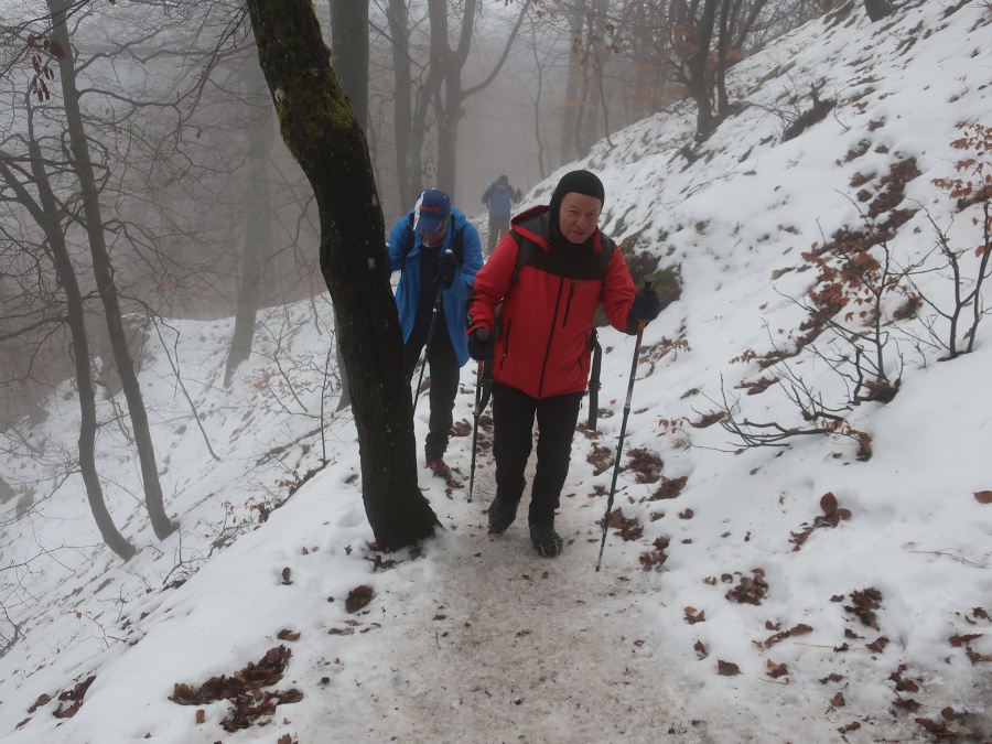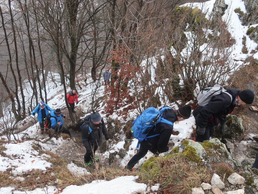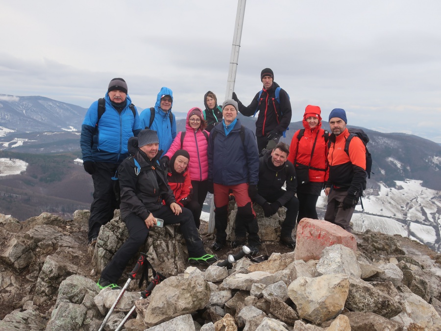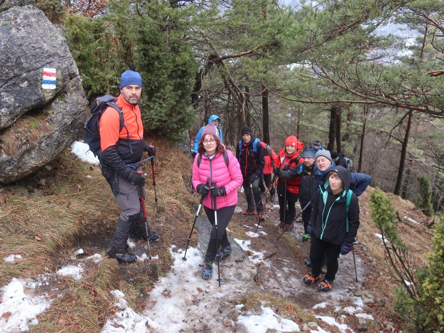 My sme sa rozhodli, že tentokrát pôjdeme zo sedla Homôlka. Autá sme zaparkovali pod lyžiarskym vlekom pri bufete Partizán. Po týždeň trvajúcich mrazoch (okolo -10°C), nastalo rapídne oteplenie (až tak, že sme videli nezvyčajne na toto ročné obdobie Salamandru škvrnitú), ale aj tak z rána bol terén zľadovatelý a bez turistických mačiek by bol výstup nebezpečný. Po modrej turistickej značke sme sa krátkym ale pomerne prudkým stúpaním dostali na bočný hrebeň, ktorý nás doviedol k smerovníku Srvátkova lúka, kde sme sa napojili na červeno značenú Cestu hrdinov SNP. Kúsok za smerovníkom bolo vybudované oddychové miesto s ohniskom a dvomi prístreškami proti dažďu. Po krátkej prestávke sme pokračovali zvlneným terénom a záverečným strmým stúpaním až do sedla Palúch a odtiaľ úzkym chodníkom k malej jaskyni, kde v prípade zlého počasia by sa dalo skryť. Pri jaskyni sa cesta rozdelila, vľavo sa išlo priamo na vrchol, túto variantu sme si zvolili aj my a vpravo sa išlo na malú lúku, kde sa nachádzalo ohnisko. Na skalnatom vrchole sa nachádzal kríž, od ktorého boli 360° výhľady do okolia. Aj keď bolo relatívne teplo, prudký vietor nás prinútil zaveliť na ústup. Keďže sme boli autami a nechcelo sa nám vymýšľať rôzne varianty, tak sme sa rovnakou trasou vrátili naspäť na parkovisko k autám.