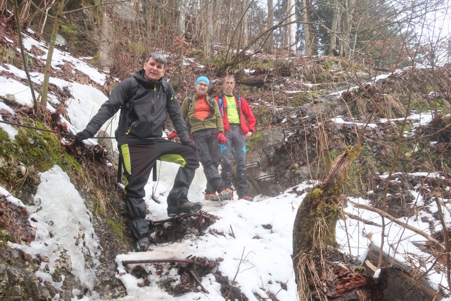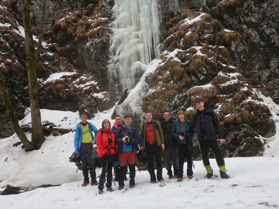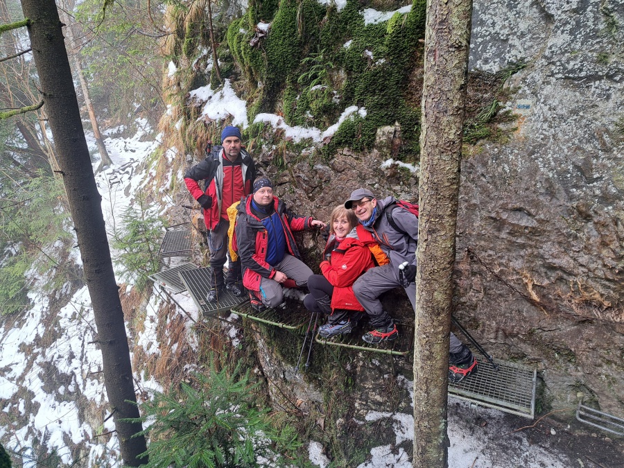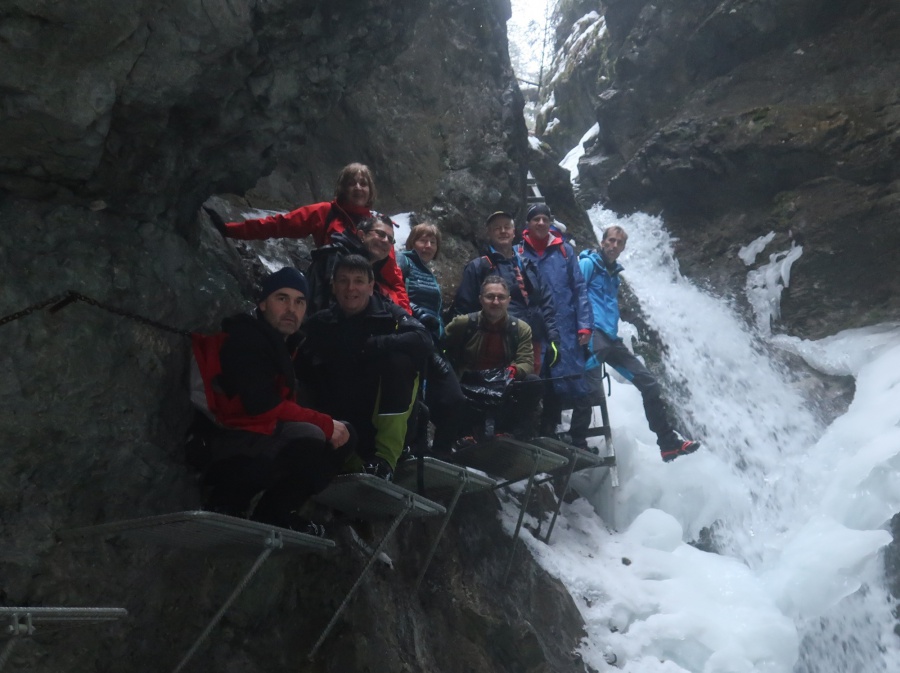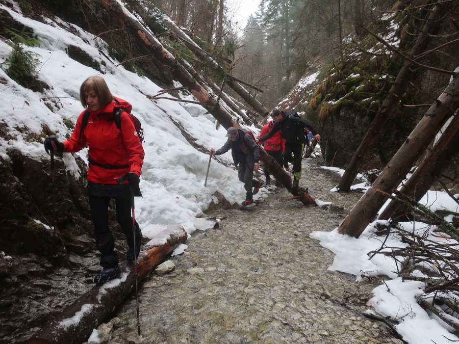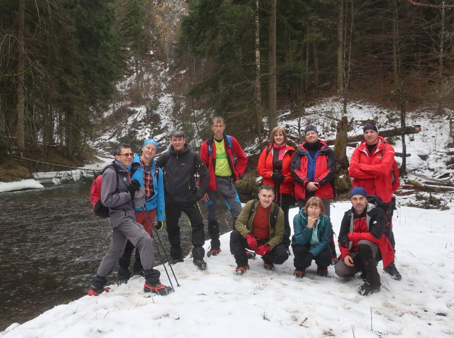 V sobotu sme sa rozhodli prejsť asi najmenej navštevovanú roklinu Veľký Sokol. Dôvodom je jej zlá dostupnosť (hlavne v zime) a mnohých odrádza aj jej dĺžka. V zimných mesiacoch bol prechod touto roklinou ozajstným turistickým zážitkom. Jednosmerný prechod bol zabezpečený sústavou drevených či kovových rebríkov, mostíkov a stúpačiek. Postupným prechádzaním rokliny sme mohli na bočných skalných stenách obdivovať nádherné cencúle, ľadové závesy a ľadopády. Po opustení rokliny sme sa napojili na Glackú cestu, ktorá nás doviedla k smerovníku Malá poľana a stále po červenej turistickej značke smerom k rázcestiu Palc a odtiaľ po žltej do osady Píla, kde sme mali zaparkovanú dodávku.