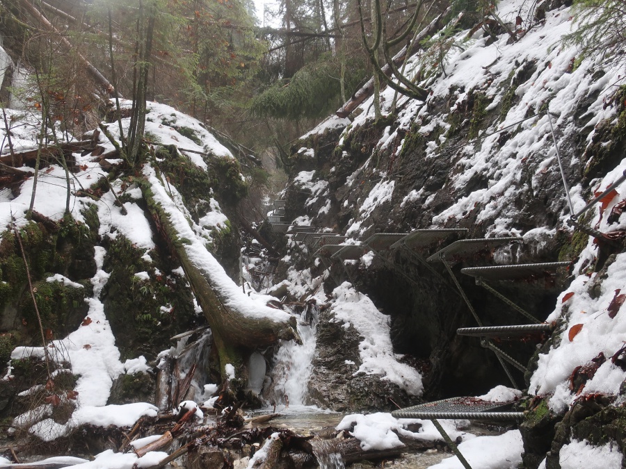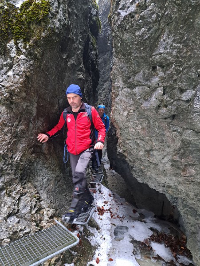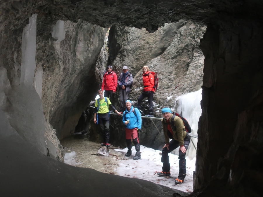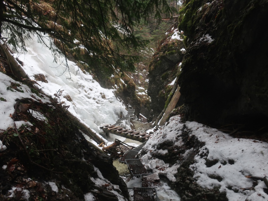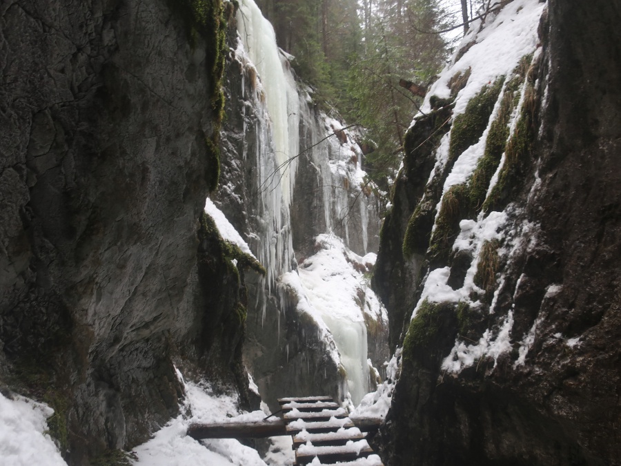 V sobotu sme sa rozhodli prejsť asi najmenej navštevovanú roklinu Veľký Sokol. Dôvodom je jej zlá dostupnosť (hlavne v zime) a mnohých odrádza aj jej dĺžka. V zimných mesiacoch bol prechod touto roklinou ozajstným turistickým zážitkom. Jednosmerný prechod bol zabezpečený sústavou drevených či kovových rebríkov, mostíkov a stúpačiek. Postupným prechádzaním rokliny sme mohli na bočných skalných stenách obdivovať nádherné cencúle, ľadové závesy a ľadopády. Po opustení rokliny sme sa napojili na Glackú cestu, ktorá nás doviedla k smerovníku Malá poľana a stále po červenej turistickej značke smerom k rázcestiu Palc a odtiaľ po žltej do osady Píla, kde sme mali zaparkovanú dodávku.