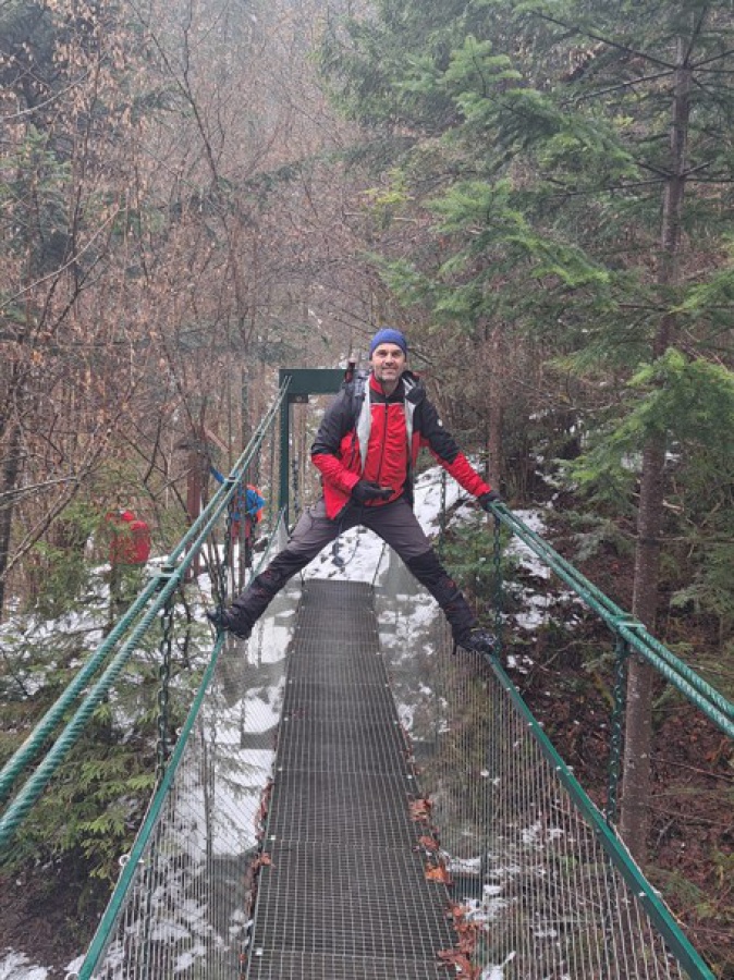 Aj keď sme boli ubytovaní v Novej Lesnej, celý predĺžený víkend sme strávili v Slovenskom raji. Na úvod sme si vybrali menej náročnú trasu interaktívnym chodníkom na Zelenú horu, kde popri chodníku boli vybudované posiľňovacie zariadenia pre zlepšenie kondície, umelecké sochy a turistický prístrešok. Odtiaľ sme pokračovali pohodlným hrebeňom ukrývajúcom skalné útvary Tunel a Lievik. Hrebeň sme opustili strmším chodníkom, ktorý nás doviedol k rekreačnej oblasti Letanovský mlyn. Druhá časť viedla exponovaným kaňonovitým úsekom Prielomu Hornádu, ktorý bol zabezpečený mostíkmi, lávkam, reťazami, stúpadlami a rebríkmi. Prechod touto časťou si vyžadoval zvýšenú opatrnosť a bez turistických mačiek skoro nemožný.
