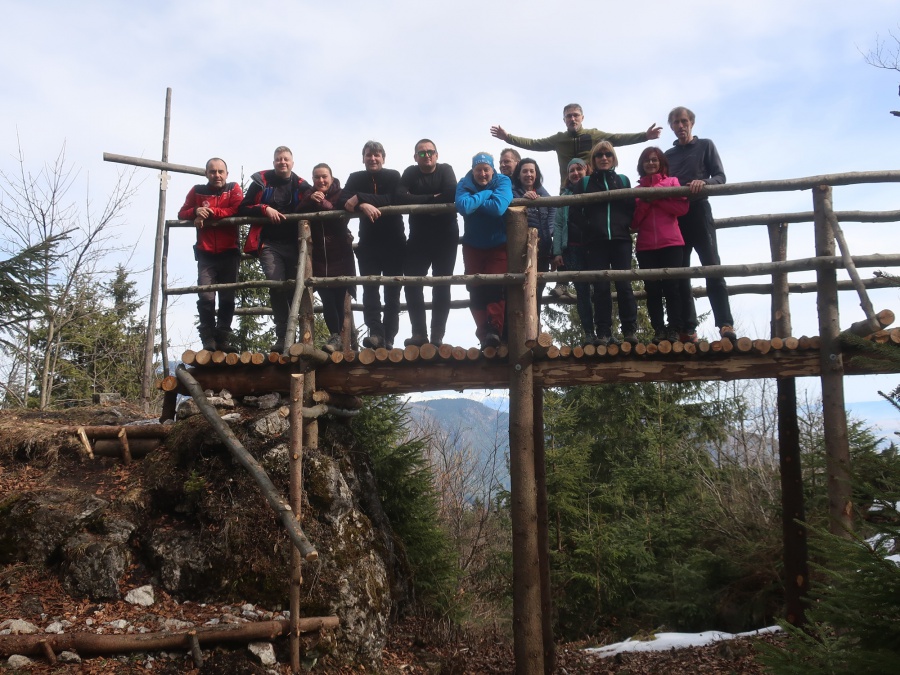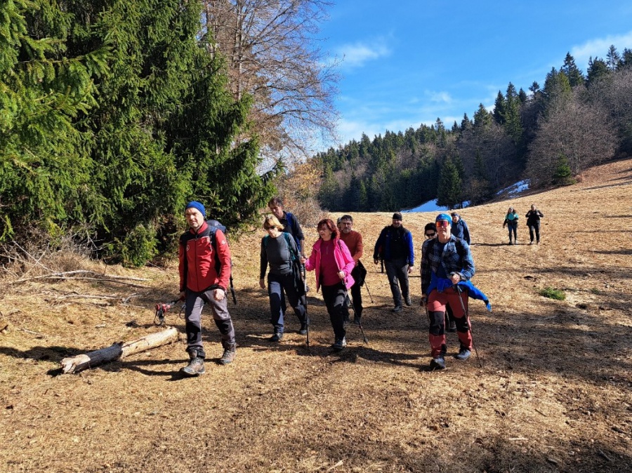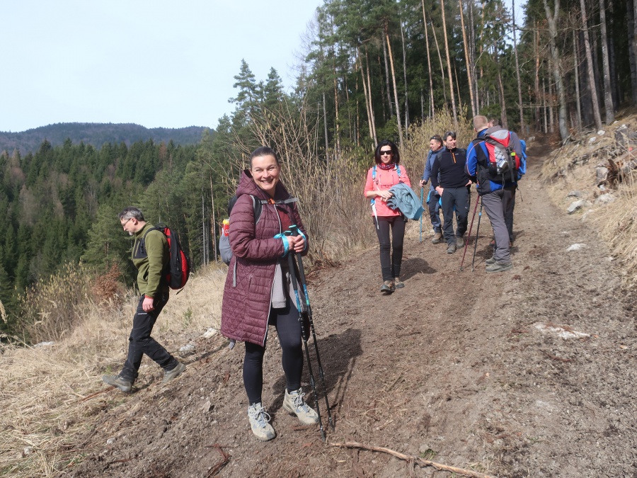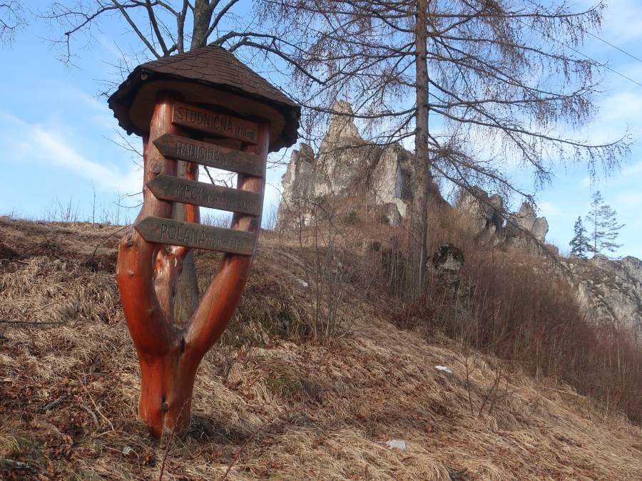 Začínali sme v obci Komjatná v časti Studničná, kde sa uprostred obce nachádzali krásne skalné útvary nazývané Sedem kostolov. Od skál sme cez obec pokračovali do lesa a po lesnej ceste sa dostali na väčšiu lúku, odkiaľ sme mali pekné výhľady na Kubínsku hoľu. Po necelej hodine sme sa dostali k smerovníku Sedlo pod Radičinou s nadmorskou výškou 1 045 metrov. Okrajom lesa sme sa dostali na lesnú cestičku a miernym zostupom na druhú lúku pod vrcholom . Odtiaľto sme už strmo stúpali až na samotný vrchol. Na konci stúpania sme odbočili vľavo a zalesneným krátkym hrebeňom sa dostali na Kečky. Vrchol bol označený vrcholovou tabuľkou pribitou na strome. Aké-také výhľady nám umožnilo len to, že na stromoch nebolo žiadne lístie. Po nabažení sa božského kľudu, sme sa rovnakou trasou vrátili naspäť do Sedla pod Radičinou. Zo sedla sme pokračovali širokou zvážnicou k ohnisku a provizórnemu prístrešku, kadiaľ bol oficiálny značený chodník na vrchol Radičinej. Vďaka miestnym turistom bola na vrchole vybudovaná vyhliadková plošina s peknými výhľadmi na Veľký Choč a v pozadí na Tatry. Z vrcholu sme sa prudkým zostupom stále po červenej značke dostali do Ružomberka miestnej časti Rybárpole av následne na parkovisko pri futbalovom štadióne, kde nás čakal odvoz domov
