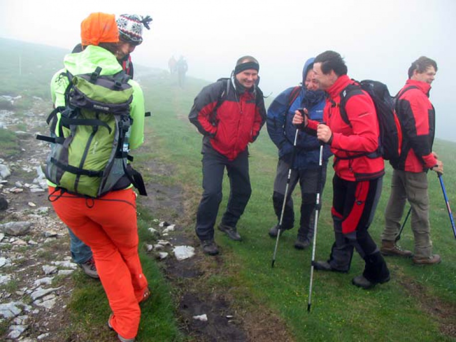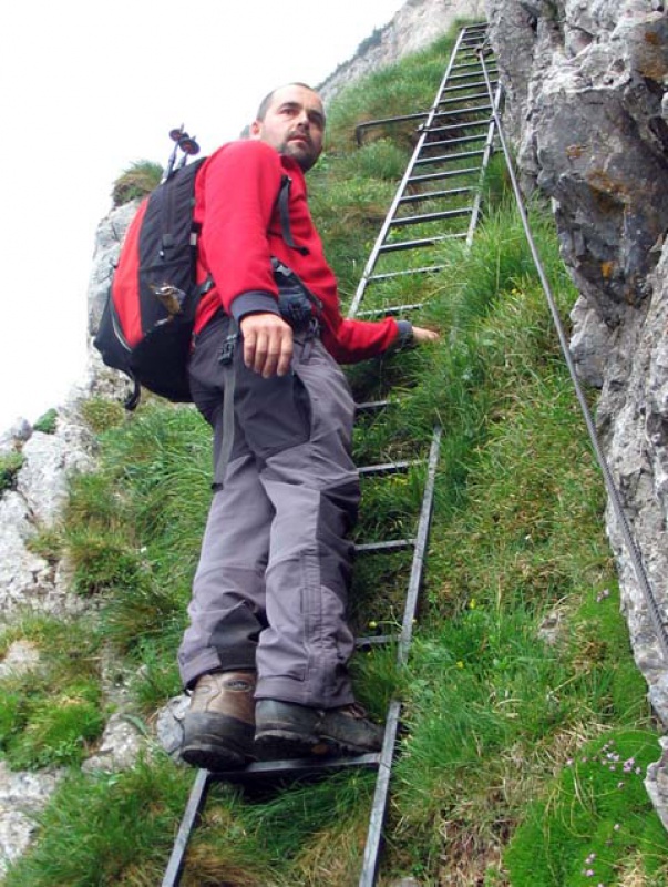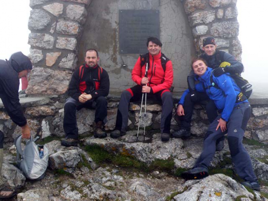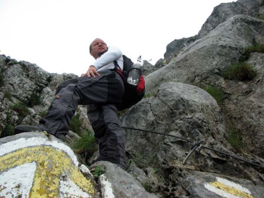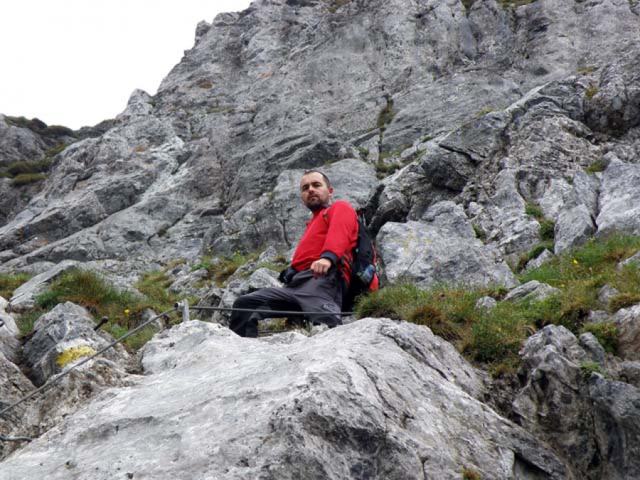 Prvý úchyt bol umiestnený trochu vyššie a bolo obtiažne sa k nemu dostať, no celý úsek bol dobre istený a všetky rebríky a stúpačky v perfektnom stave. Ferratový úsek končí pri železnom kríži, odkiaľ sme pokračovali doľava až na vrchol Heukuppe. Výstup nám sťažoval prudký vietor a hmla, ktorá náhle vystúpala z dolín. Premrznutí prichádzame k mohyle na vrchole. Silný vietor, chlad a hustá hmla nám nedovoľujú dlhšie sa zdržať a velia na rýchly zostup. Klesáme až ku chate Karol Ludwig Haus, kde si dávame malé občerstvenie a niečo na zahriatie. Od chaty zostupujeme do sedla, odkiaľ sme odbočili na ferratový traverz. Na konci tohto úseku sa cesta stočila prudko doprava a strmo dole. Po skalnatom hrebeni schádzame na chatu Vaxriegel Haus a na parkovisko k autobusu.