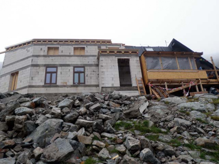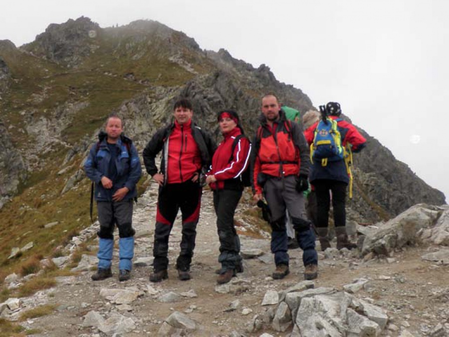 Na vrchole sa dlho nezdržiavame, lebo zlá viditeľnosť a prvé dažďové kvapky v kombinácii so silným vetrom nás nútia ísť čo najrýchlejšie dolu na Chatu pod Rysmi (v súčasnosti funguje len provizórne, pretože bola zničená lavínou). Tu si konečne robíme dlhšiu prestávku, neodolali sme pareným buchtám a horúcemu čaju. Chatu opúšťame za stáleho dažďa, ktorý nás sprevádzal takmer až na Štrbské pleso.