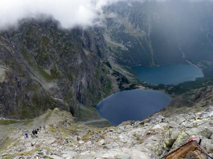 Nasledujúci deň sme opäť vycestovali na poľskú stranu. Tento raz sme si zvolili prechod cez Szpiglasowu Przelecz na Morské oko s odbočkou na Hrubý štít. Trasa to bola síce dlhá, ale kondične a technicky nenáročná, aj keď pod vrcholom je chodník istený reťazami. Zostup nám sťažovalo drobné sneženie, ktoré sa neskôr zmenilo na vytrvalý dážď.