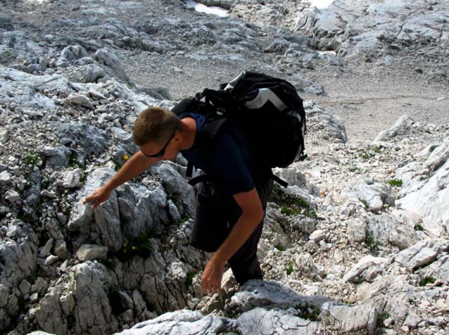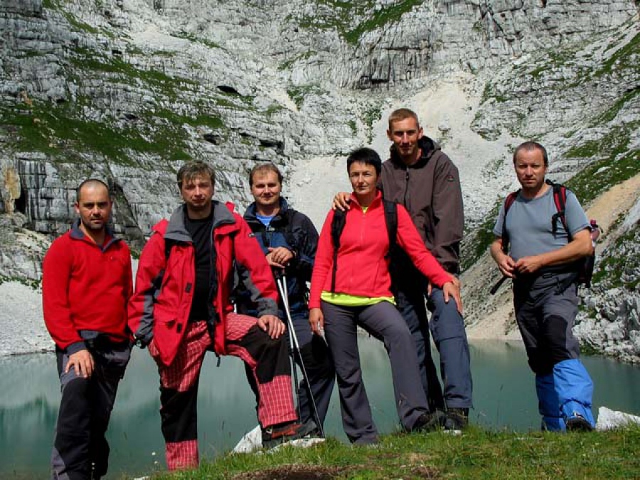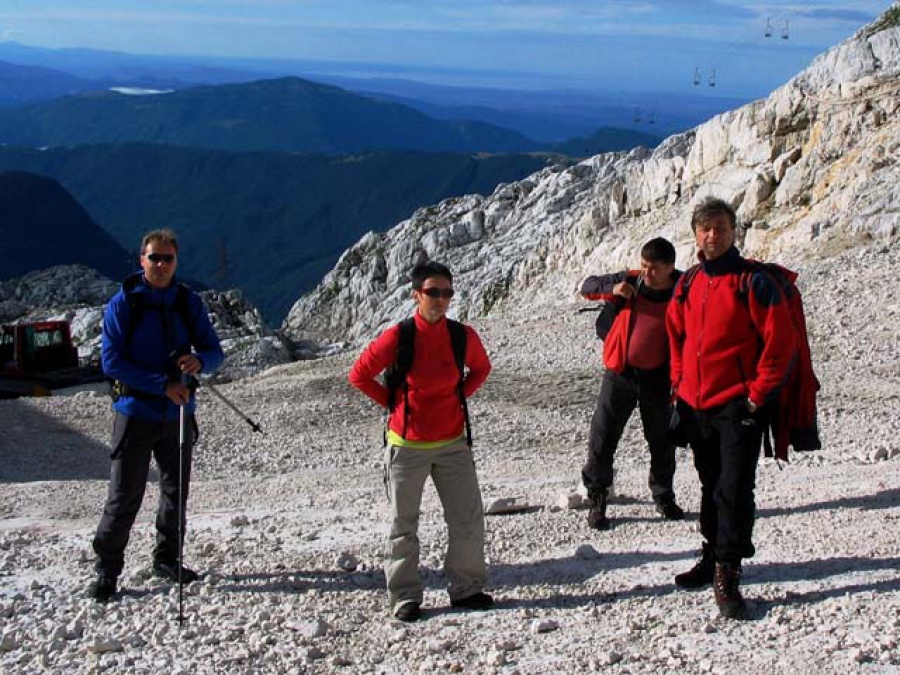 V piatok ráno svieti slniečko a my sme pripravení na túru, ktorú nám odporučil miestny znalec. Vraj pekná, s výhľadom na Triglav, najvyšší vrch Slovinska. Vyrážame z parkoviska z nadmorskej výšky 620 m.n.m. A viac ako 3 hodiny stúpame neskutočnou vápencovou krajinou až na Pogačnikov dom – chatu vo výške 2050 m.n.m. Tu plánujeme drobnú zastávku a chceme pokračovať ďalej. Počasie je však proti. Rýchla zmena prináša dážď a tak po chvíli čakania zostupujeme za neustáleho dažďa späť k autu. Napriek tomu to bol krásny deň, počas ktorého sme s Ferim oprášili znalosti z botaniky. Hore bolo v plnom rozkvete množstvo vzácnych druhov rastlín – horce, astry, klinčeky a našiel sa aj plesnivec. Latinské názvy, na ktoré sme si občas spomenuli, vyvolávali u ostatných množstvo ironických poznámok.