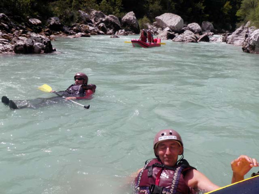 Nedeľný rafting bol príjemnou bodkou za všetkými zážitkami. Záverečný hromadný kúpeľ v 12-stupňovej vode Soče, neskorý obed, balenie. Odchádzame s konštatovaním, že sa na tieto miesta ešte určite vrátime. Cesta cez horský priesmyk ubieha akosi rýchlo, poslednýkrát sa obzeráme na miesta, kde sme strávili nezabudnuteľné chvíle. Očakávaná zápcha okolo Viedne sa nekoná, a tak sa v neskorých večerných hodinách postupne lúčime s pocitom, že sa poznáme roky. V hlavách predsedu Paľa a Dušana sa už rodí ďalší plán na podobnú akciu niekedy na jar. Už teraz sa na ňu veľmi tešíme!