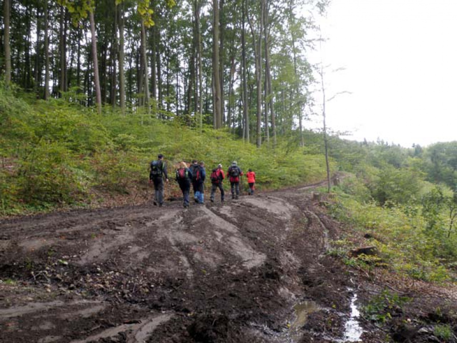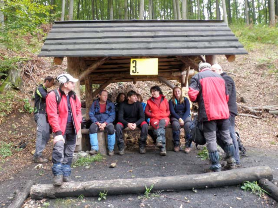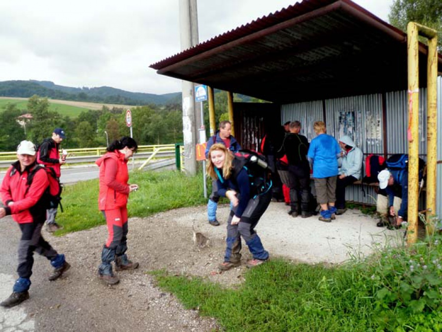 Po krátkej úvahe som sa rozhodla, že keď je to také jednoduché, tak to s nimi skúsim. Ale to bola chyba! Možno pre nich to je „spoločenská“ akcia, ale pre nás, počítačové typy, to bola neskutočne náročná turistika. Jednoznačne k tomu prispela aj nádcha a bolesti kĺbov, ktoré ma už niekoľko dní trápili. Začiatok tejto trasy sa konal pri hoteli Wili v Púchove. Necelé dva kilometre viedli po asfaltovej ceste, tu sme sa napojili na modrú značku, ktorá viedla do lesného terénu. A tam skončila aj všetka sranda.