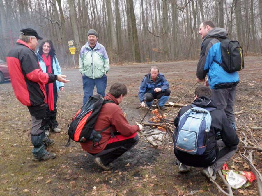 Hŕstka nadšencov - v počte 15 kusov - sme sa stretli pri pošte v Považskej Bystrici, nasadli do štyroch áut a vydali sa do Bučovíc. Nezašli sme ďaleko, už po pár sto metroch nás zastavila policajná hliadka a nakoľko to bola sobota čakali, že natrafia na podnapitého vodiča. Nestalo sa! My predsa nie sme alkoholici, my sme turisti! Zvyšok cesty prebehol pokojne...