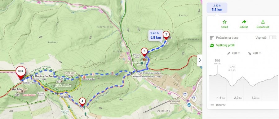 Buchlov; hrad - Sv. Barbora - Čertovo sedlo - Pod Břesteckou skalkou - rozc. - Břestecká skála - Komínek - Pod Břesteckou skalkou - rozc. - Pod Barborkou - Buchlov; hrad