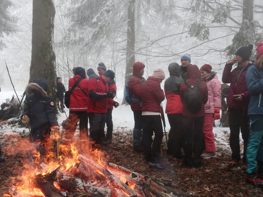Členovia nášho klubu každoročne začínajú turistickú sezónu výstupom na Veľký Manín. Takto tomu bolo aj tohto roku. Výstup sme absolvovali po serpentíne (žltou značený chodník), snehu bolo poskromne, ale vcelku pekne primrznuté, pri chôdzi krásne chrumkal pod nohami. Na lúke pod vrchol sa zišla skvelá partia, ktorá sa zohrievala pri vatre. Mnohí z tých, ktorí po silvestrovskej noci neváhali na Veľký Manín vystúpiť, symbolicky privítali nový rok v kruhu turistov, horolezcov, jaskyniarov i ostatných, ktorých láka a spája príroda.