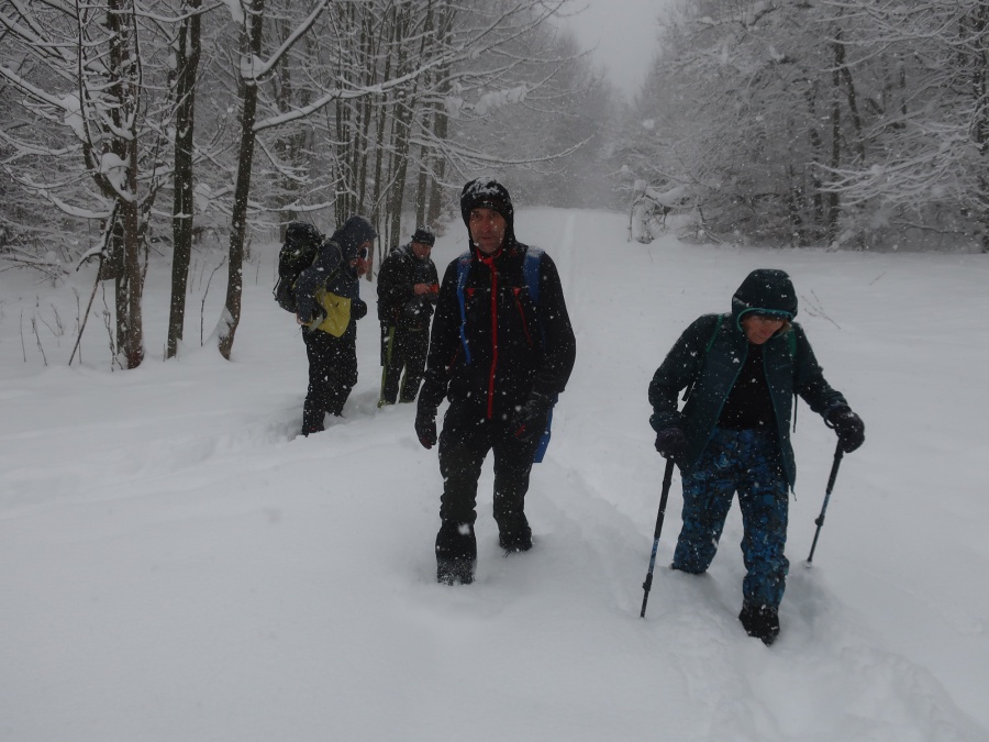 Po šiestich rokoch sme sa opäť rozhodli, že sa pôjdeme pozrieť na vrch Pupov. Autá sme zaparkovali pri hlavnej ceste medzi Terchovou a Zázrivou pod osadou Huličiarovci. Pôvodne sme chceli parkovať v osade, ale množstvo napadnutého snehu nám nedovolilo ísť autom ďalej. Pre výstup na Pupov sme netradične zvolili miestne lesné cesty. Od zaparkovaných áut sme išli po zelenej turistickej značke do osady Huličiarovci, v osade pri odbočke vľavo, sme sa odpojili zo značky a pokračovali sme rovno k posledným domom. Odtiaľto chodník stúpal strmo hore k ďalšej osady Ploštiny, kde sme sa napojili na cyklotrasu v smere do ďalšej osady Miškovia. Z cyklotrasy sme odbočili pri smerovníku Demkovská a na vrchol začali stúpať bez serpentín strmo hore. Tesne pod vrcholom sme vyšli z lesa a dostali sa na otvorený priestor, kde nás prekvapil prudký vietor, hmla a k tomu stále sneženie, ktoré nás sprevádzalo počas celého výstupu. Na samotnom vrchole bola umiestnený stĺpik bez označenia vrcholu. Po krátkej prestávke a prehodnotení poveternostných podmienok sme rovnakou trasou vrátili naspäť k autám. Naše rozhodnutie parkovať dolu, sme ocenili až po príchode naspäť k autám, lebo počas nášho tri a pol hodinovom výstupe pripadlo Ďalších 15 cm nového snehu.