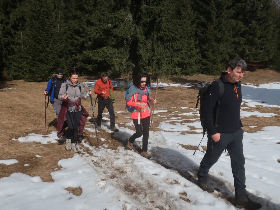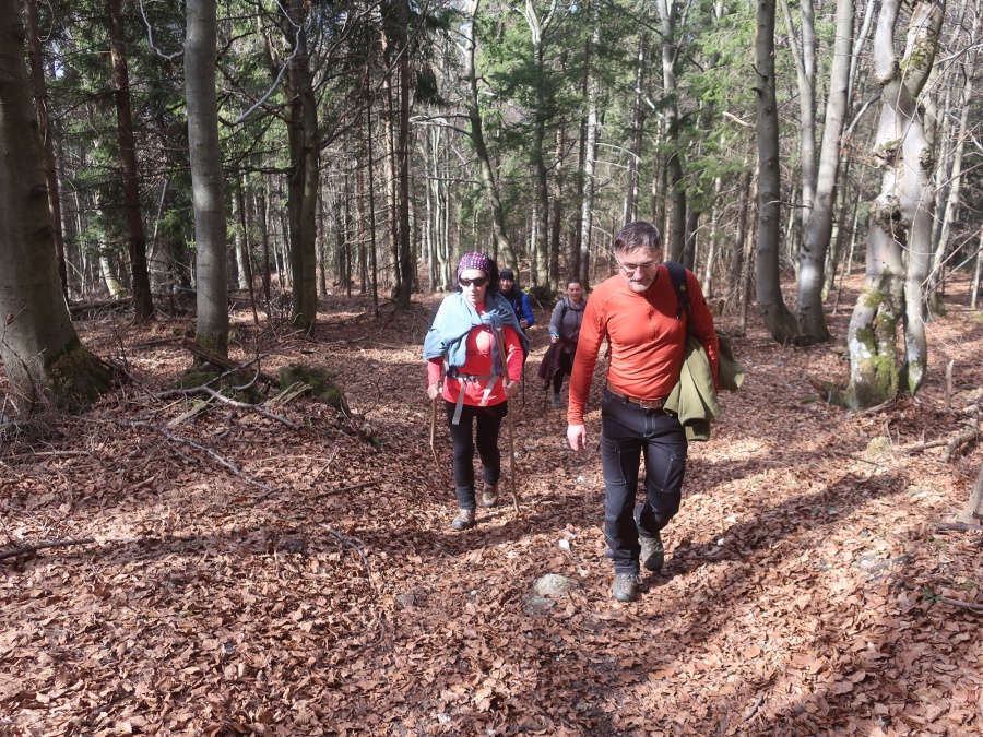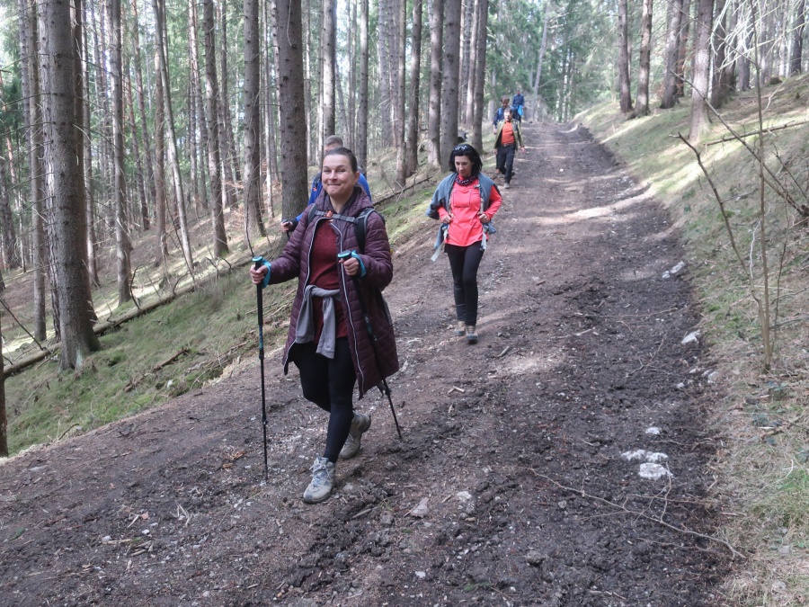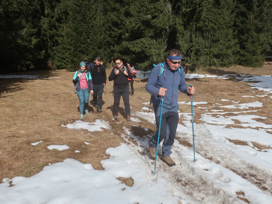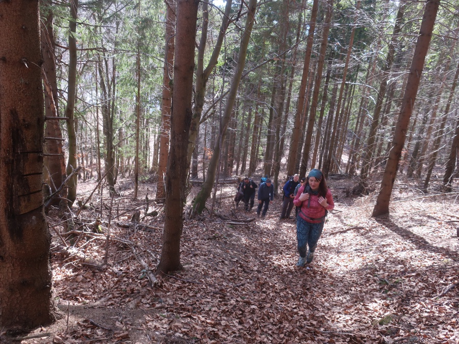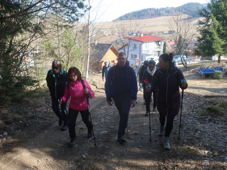 Začínali sme v obci Komjatná v časti Studničná, kde sa uprostred obce nachádzali krásne skalné útvary nazývané Sedem kostolov. Od skál sme cez obec pokračovali do lesa a po lesnej ceste sa dostali na väčšiu lúku, odkiaľ sme mali pekné výhľady na Kubínsku hoľu. Po necelej hodine sme sa dostali k smerovníku Sedlo pod Radičinou s nadmorskou výškou 1 045 metrov. Okrajom lesa sme sa dostali na lesnú cestičku a miernym zostupom na druhú lúku pod vrcholom . Odtiaľto sme už strmo stúpali až na samotný vrchol. Na konci stúpania sme odbočili vľavo a zalesneným krátkym hrebeňom sa dostali na Kečky. Vrchol bol označený vrcholovou tabuľkou pribitou na strome. Aké-také výhľady nám umožnilo len to, že na stromoch nebolo žiadne lístie. Po nabažení sa božského kľudu, sme sa rovnakou trasou vrátili naspäť do Sedla pod Radičinou. Zo sedla sme pokračovali širokou zvážnicou k ohnisku a provizórnemu prístrešku, kadiaľ bol oficiálny značený chodník na vrchol Radičinej. Vďaka miestnym turistom bola na vrchole vybudovaná vyhliadková plošina s peknými výhľadmi na Veľký Choč a v pozadí na Tatry. Z vrcholu sme sa prudkým zostupom stále po červenej značke dostali do Ružomberka miestnej časti Rybárpole av následne na parkovisko pri futbalovom štadióne, kde nás čakal odvoz domov
